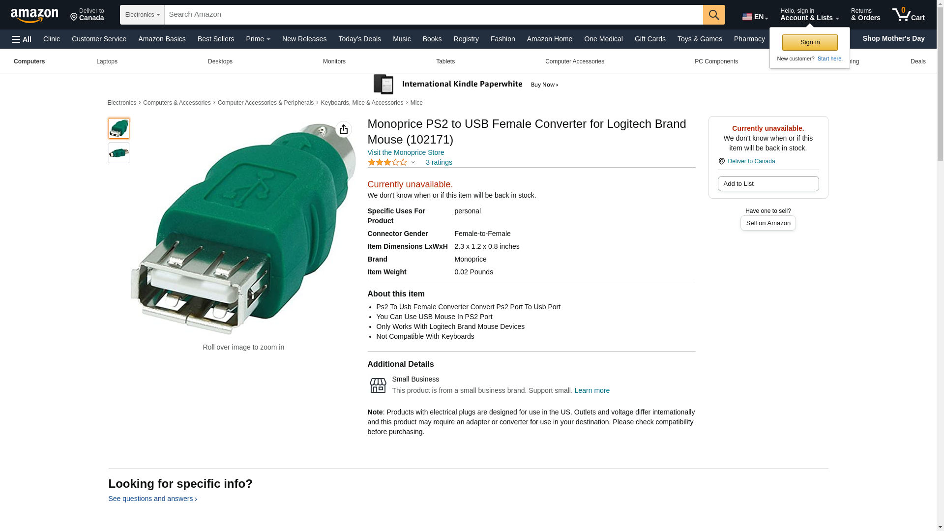 Monoprice+Ps2+(Mdin6m)+To+Usb+Female+Converter+For+Logitech+Brand+Mouse