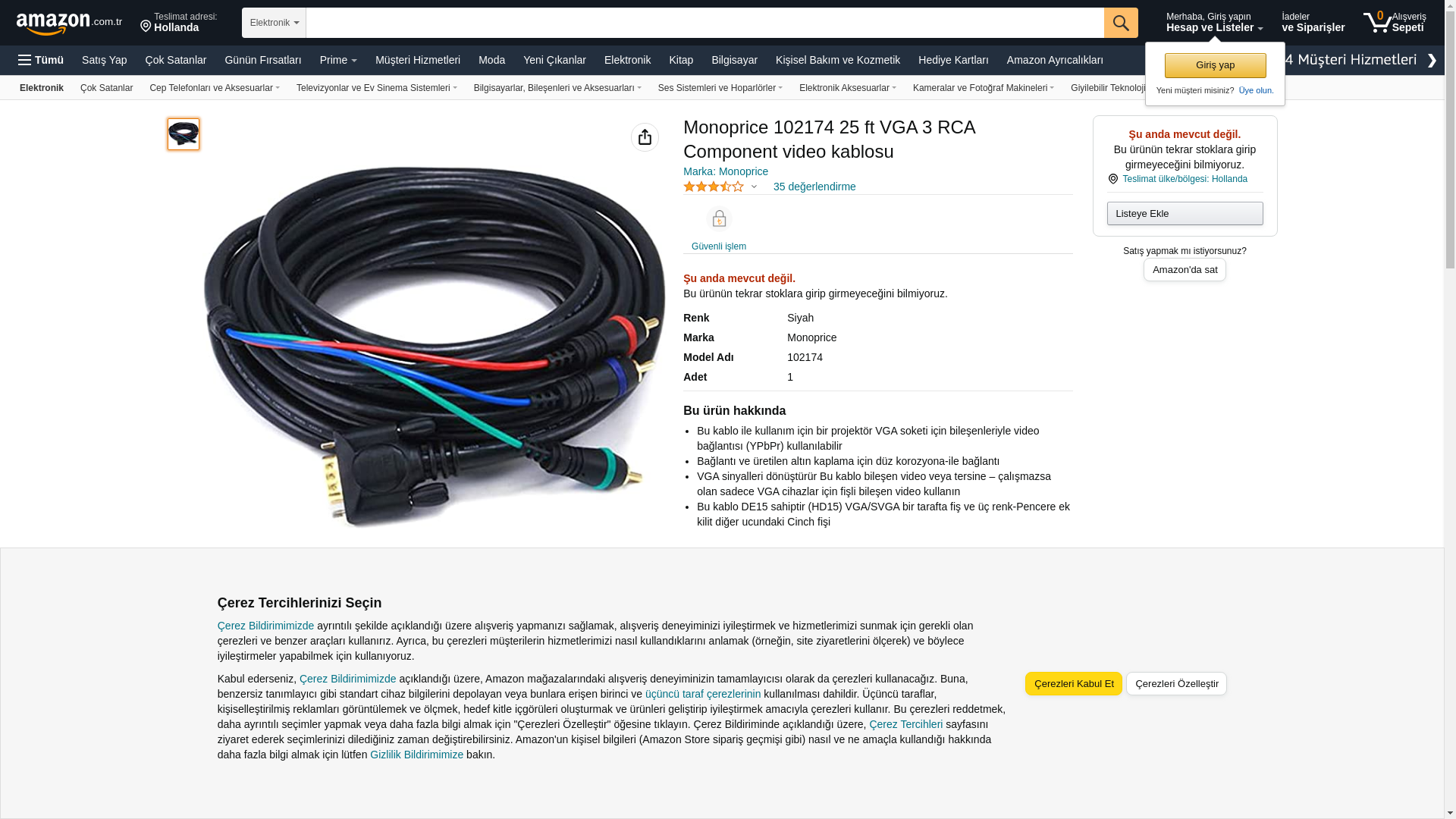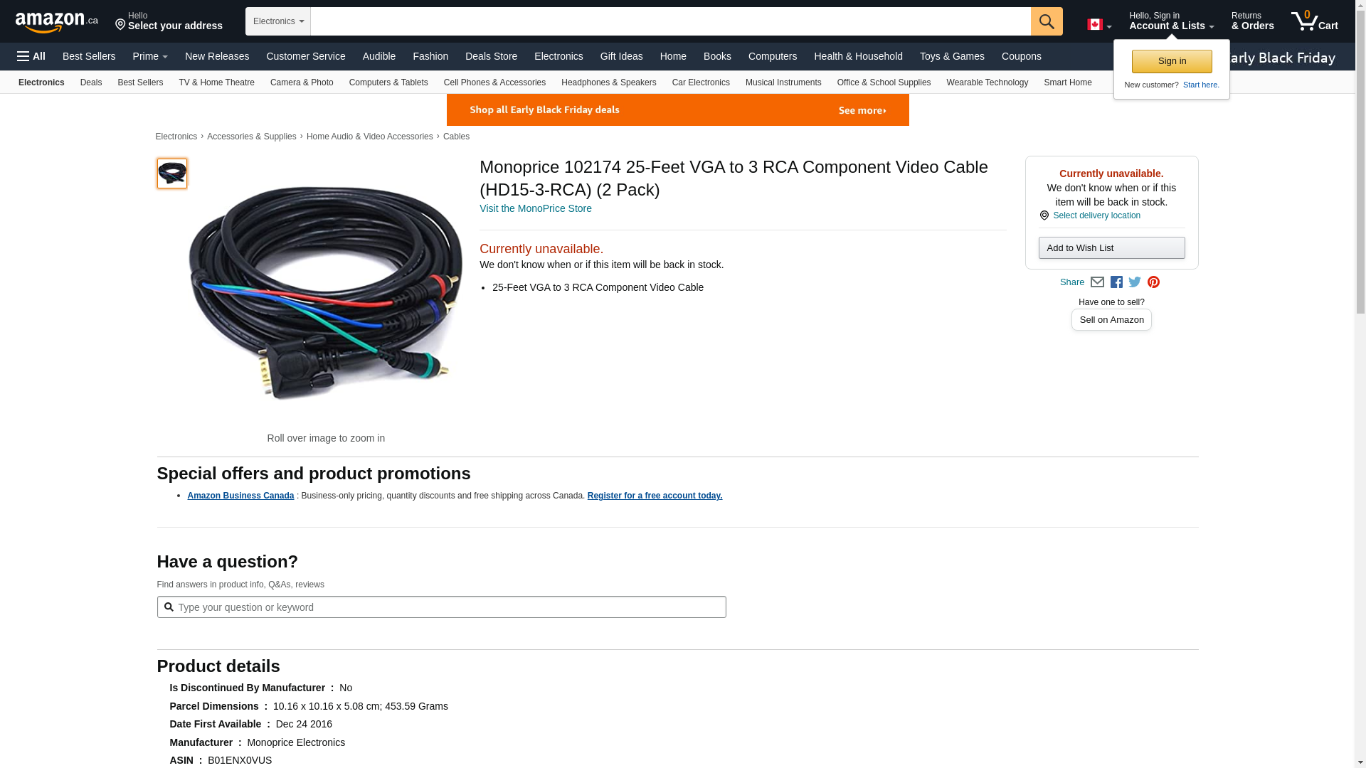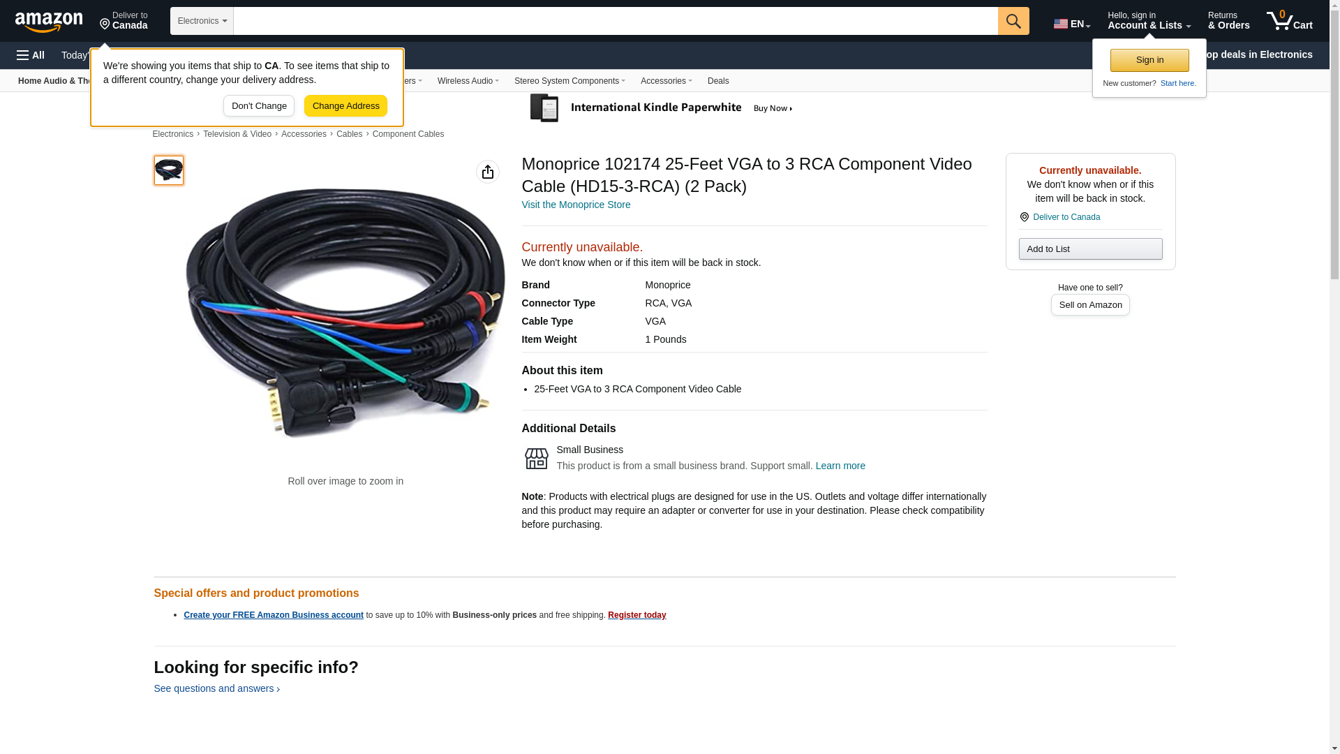 Monoprice 102174 25-Feet VGA to 3 RCA Component Video Cable (HD15-3-RCA) (2 Pack)