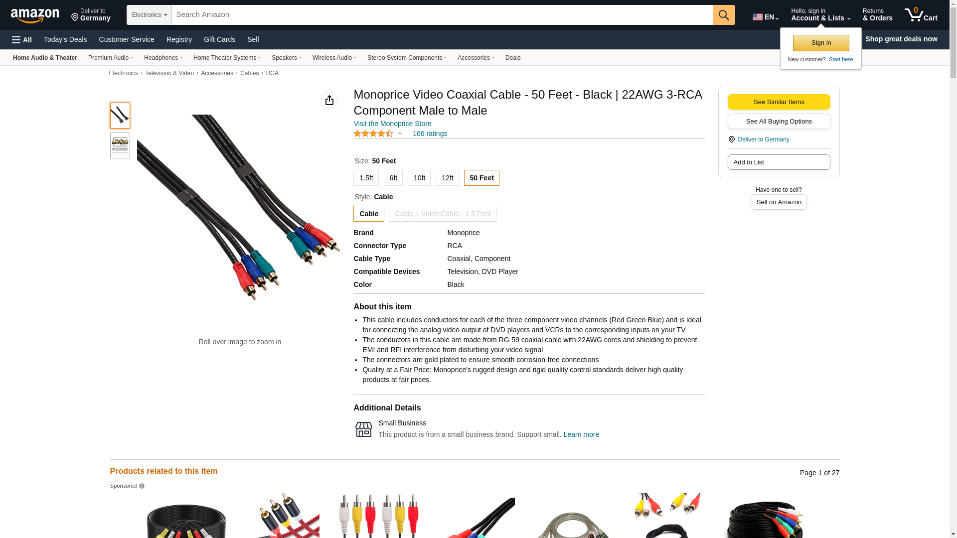 Monoprice Video Coaxial Cable - 50 Feet - Black | 22AWG 3-RCA Component Male to Male