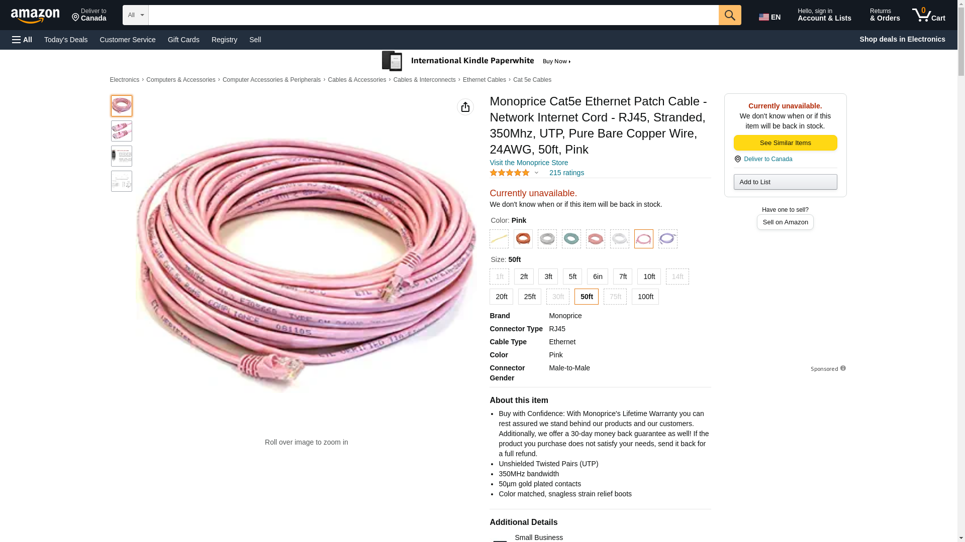 Monoprice 50-Feet 24AWG Cat5e 350MHz UTP Bare Copper Ethernet Network Cable, Pink (103717). Monoprice Cat5e fixed len...