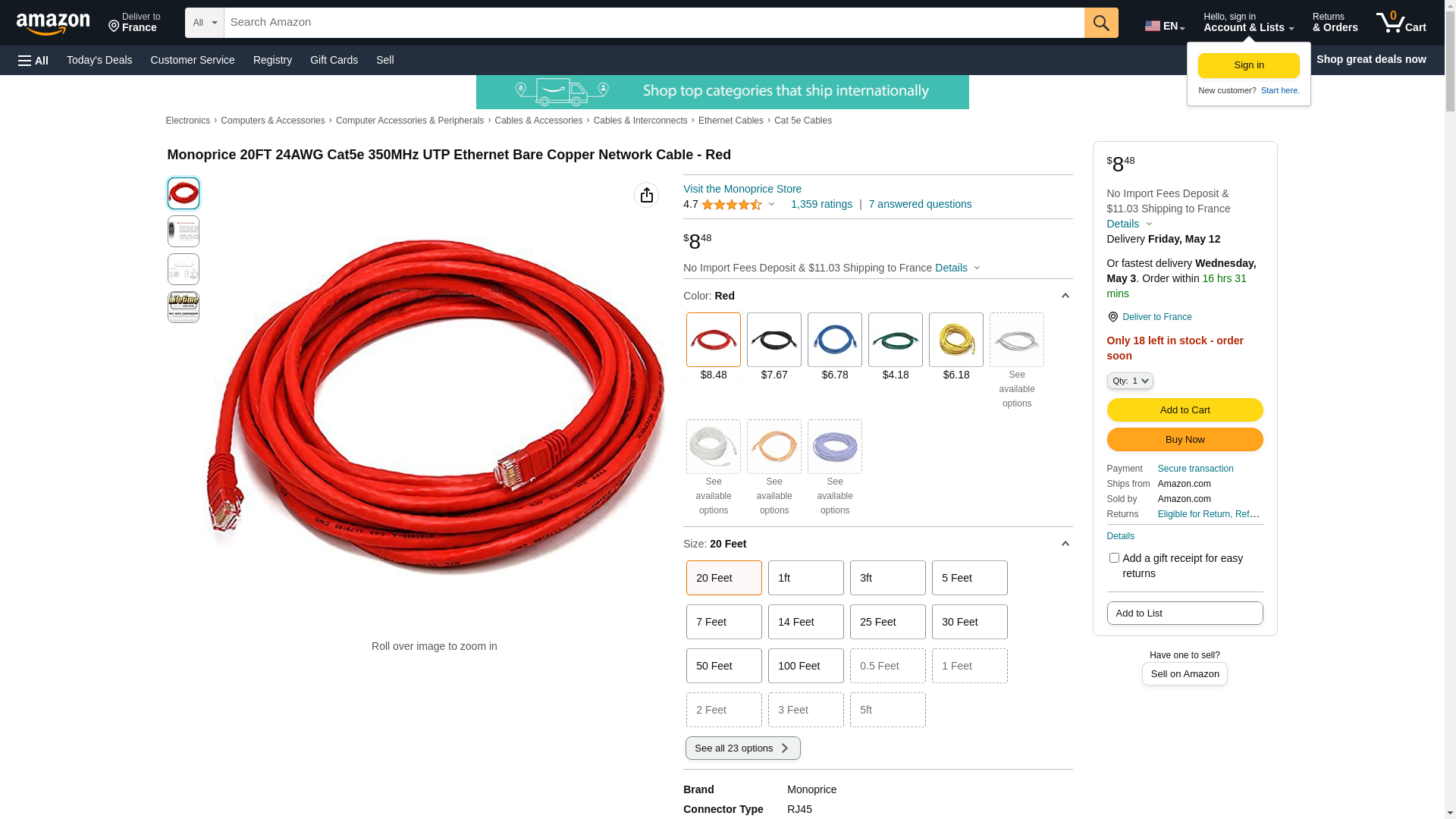 Monoprice 20FT 24AWG Cat5e 350MHz UTP Ethernet Bare Copper Network Cable - Red. Monoprice Cat5e fixed length network ...