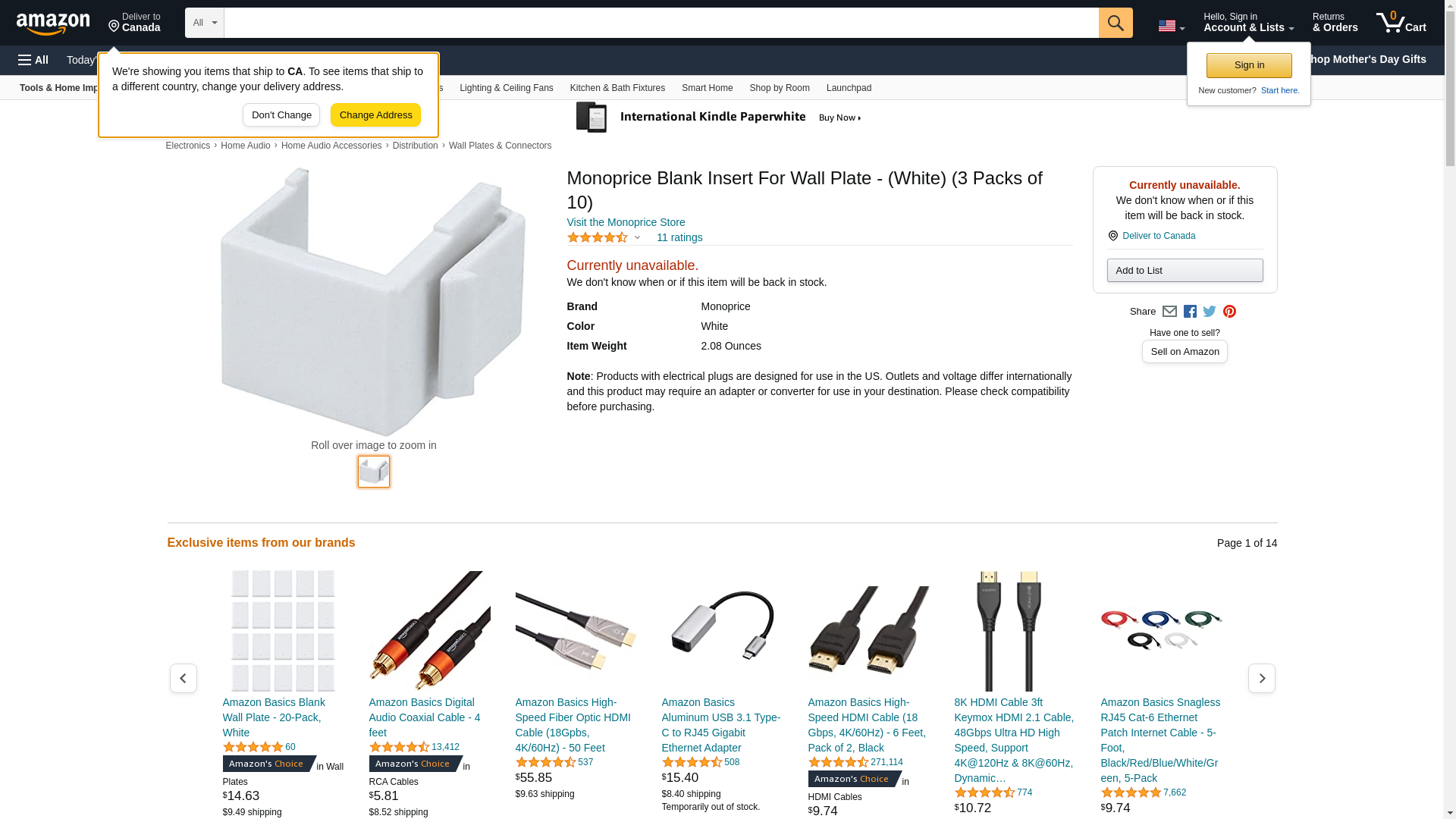 Monoprice Blank Insert For Wall Plate - 10pcs/Pack (White). Blank insert for keystone wall plates. Manufactured in Ch...