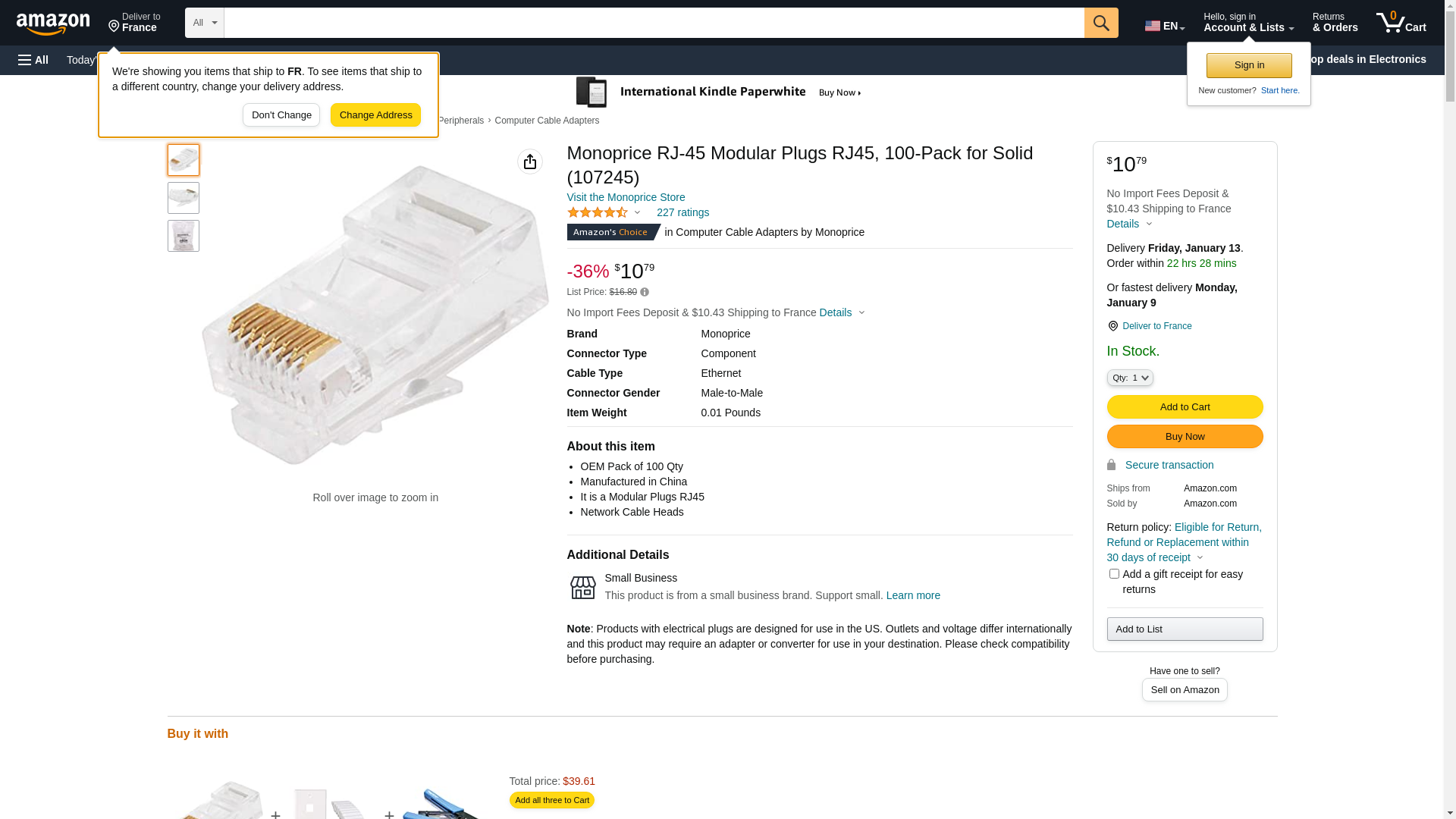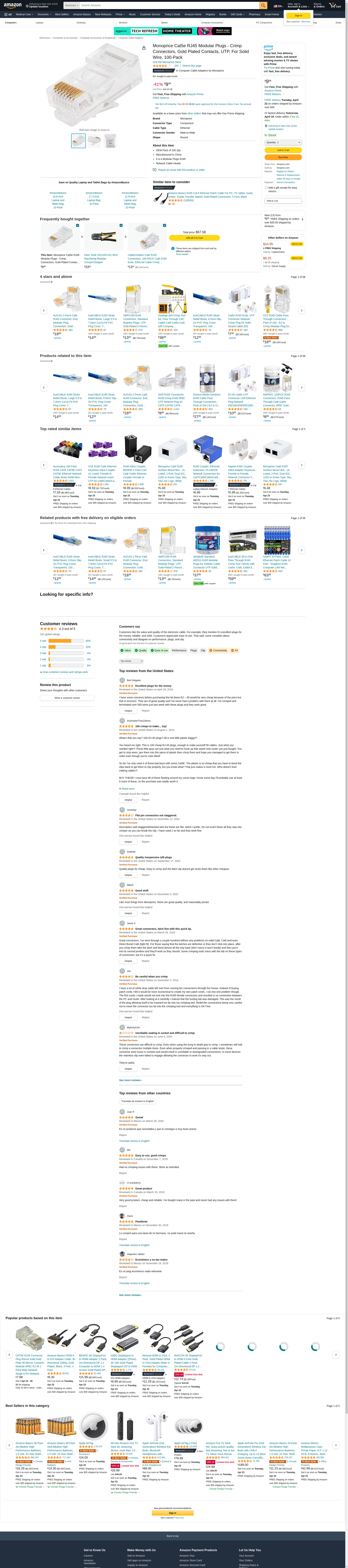 Monoprice RJ-45 Modular Plugs RJ45, 100-Pack for Solid (107245). OEM Pack of 100 Qty. Manufactured in China. It is a ...