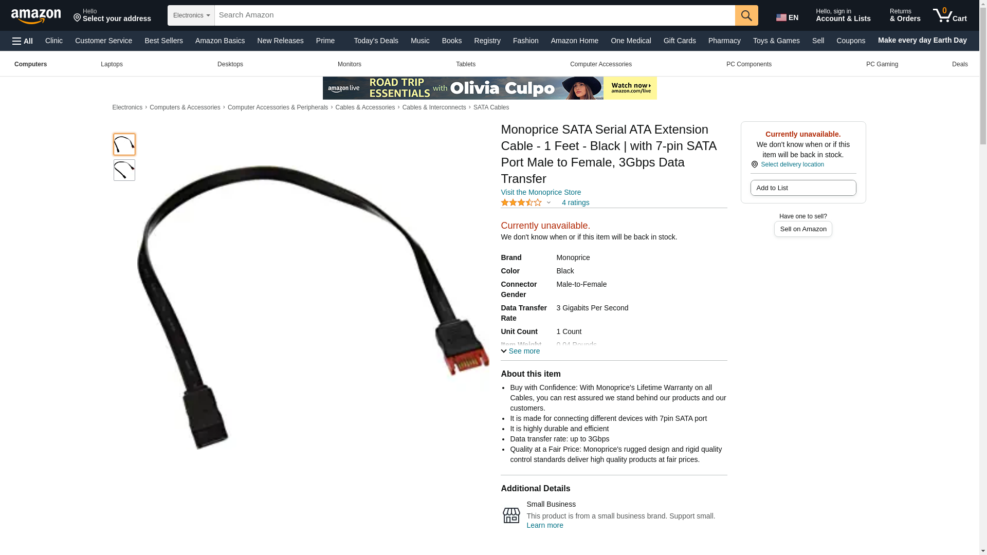 | Feature | This SATA cables enables you to extend a SATA interface |