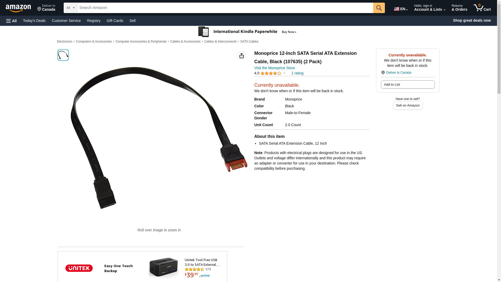 | Feature | SATA Serial ATA Extension Cable, 12 Inch |