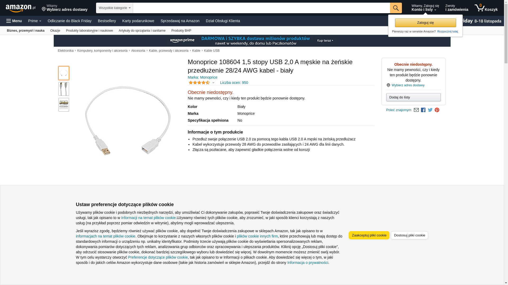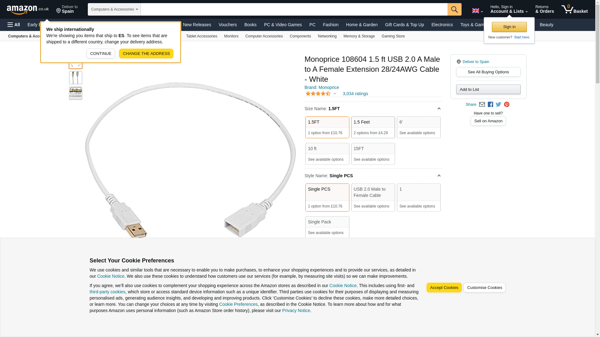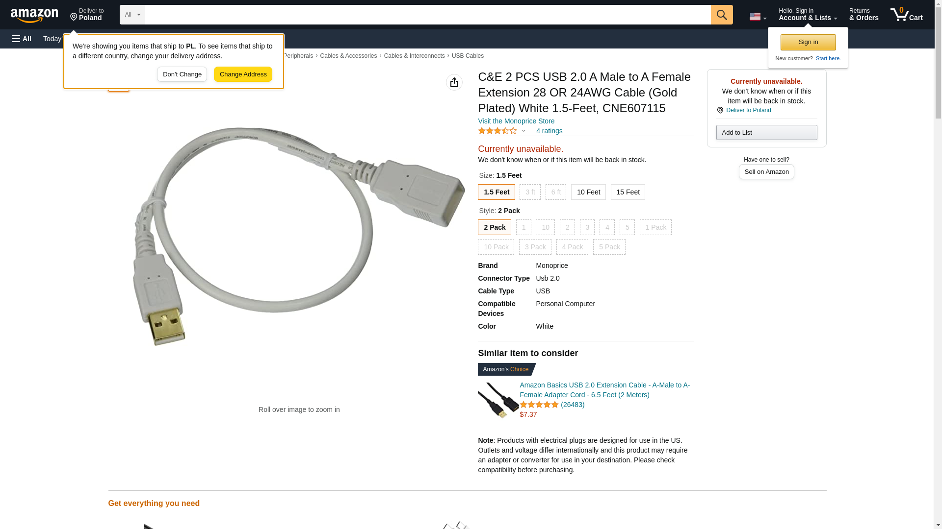 Monoprice 1.5-Feet USB 2.0 A Male to A Female Extension 28/24AWG Cable (Gold Plated), White (108604). Save when you b...