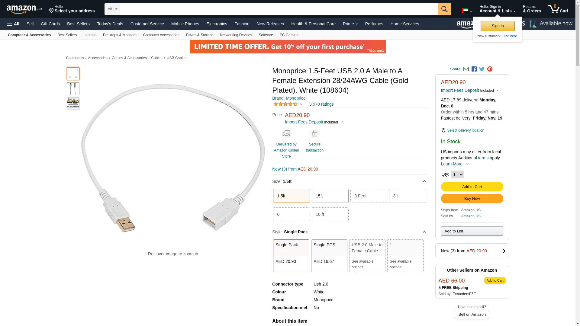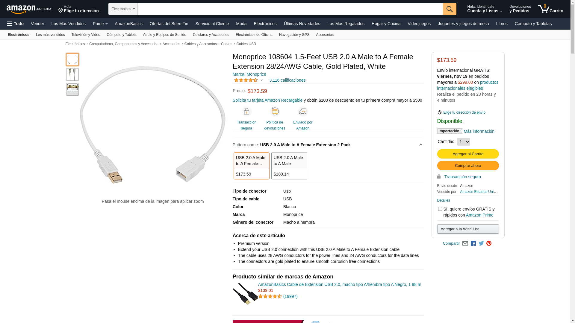 | Feature | Extend your USB 2.0 connection with this USB 2.0 A Male to A Female Extension cable |