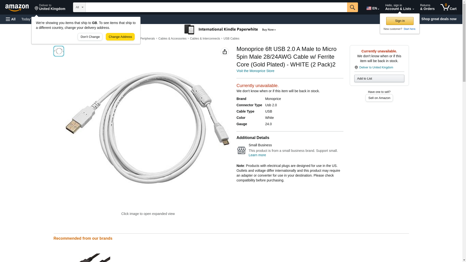 Monoprice 6ft USB 2.0 A Male to Micro 5pin Male 28/24AWG Cable w/ Ferrite Core (Gold Plated) - WHITE (2 Pack)2