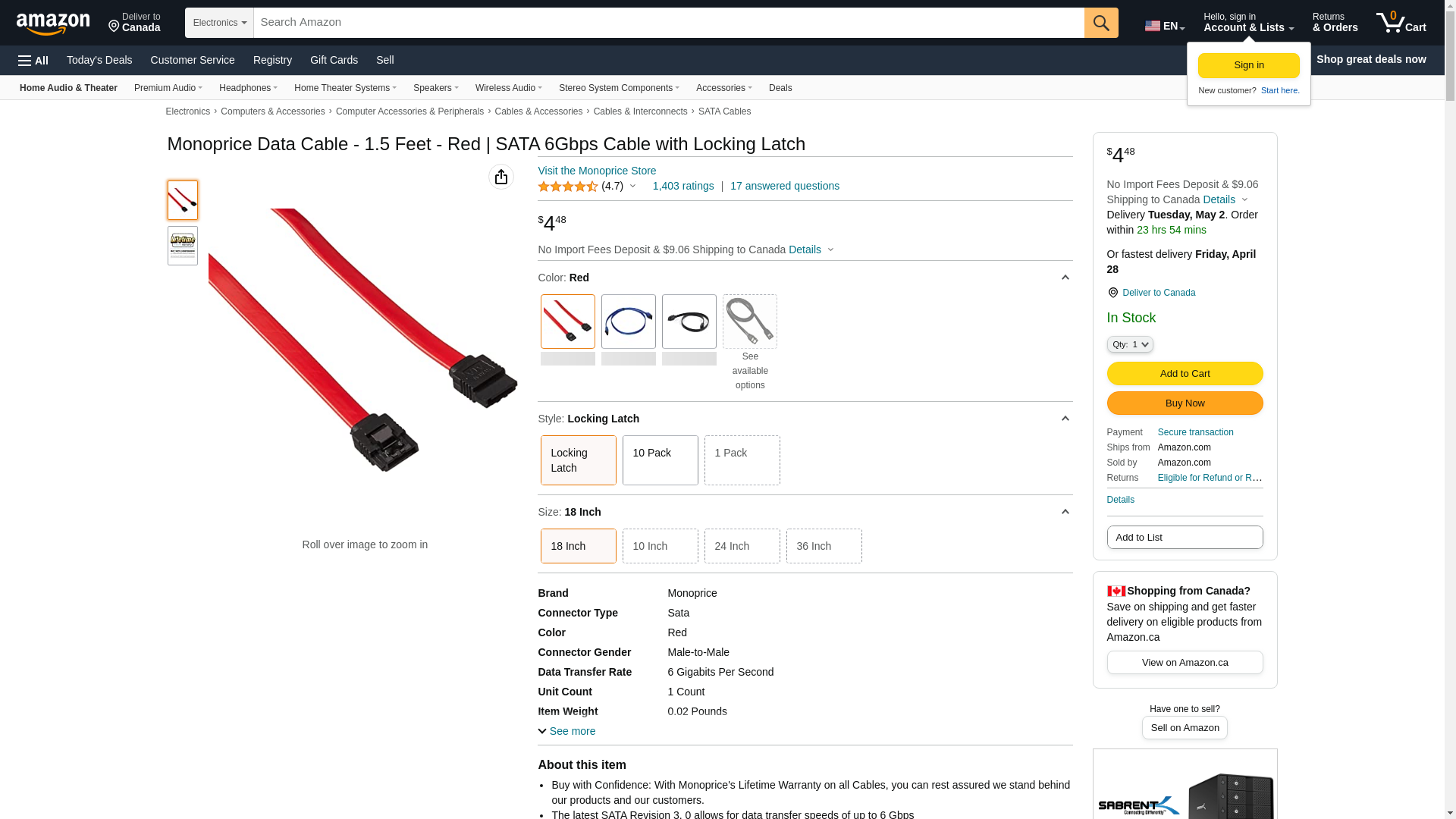 Monoprice 108787 18-Inch SATA 6Gbps Cable with Locking Latch, UV Blue. Each major revision of the Serial ATA interfac...