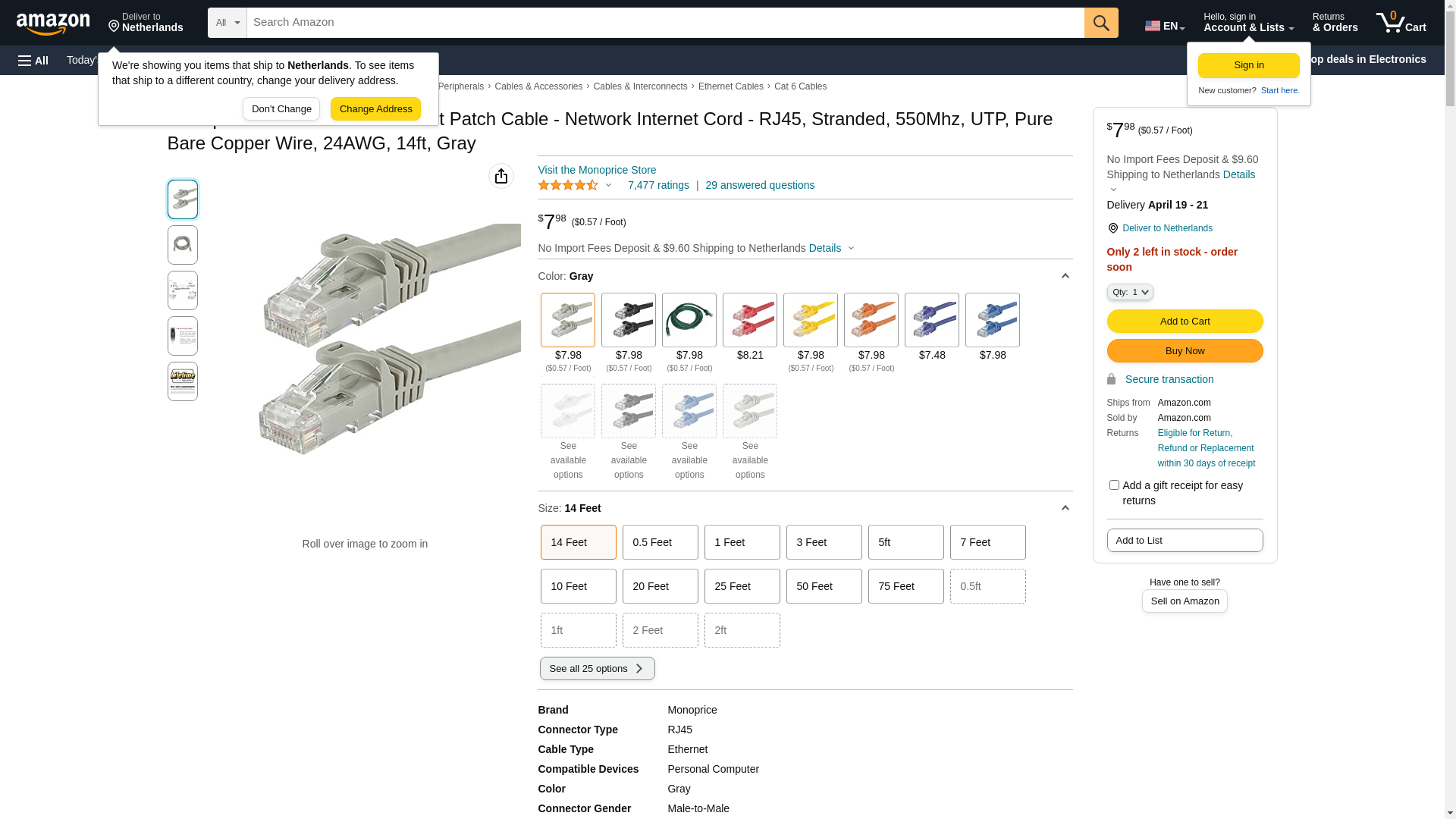 Monoprice Cat6 Ethernet Patch Cable - RJ45, Stranded, 550Mhz, UTP, Pure Bare Copper Wire, 24AWG, 14 Feet, Gray - Flexboot Series