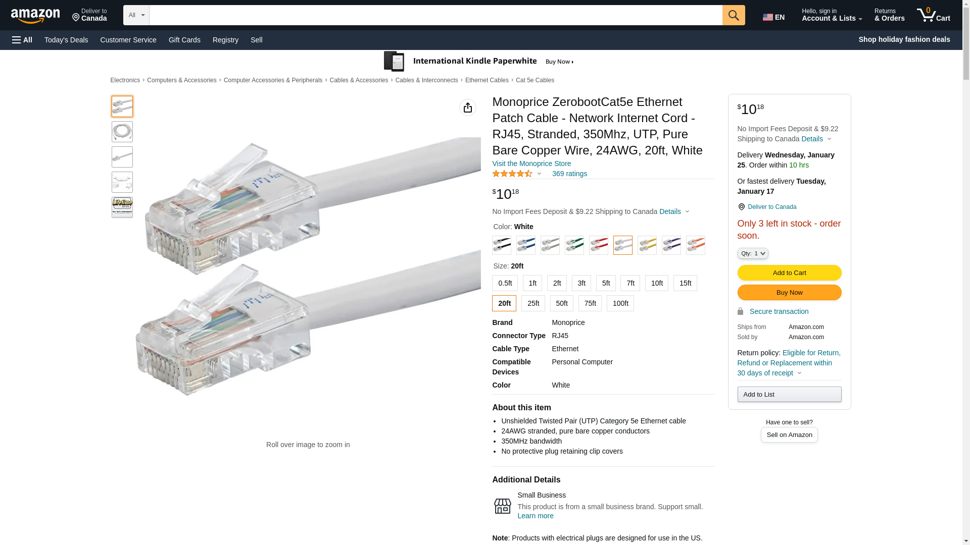 Monoprice ZerobootCat5e Ethernet Patch Cable - Network Internet Cord - RJ45, Stranded, 350Mhz, UTP, Pure Bare Copper Wire, 24AWG, 20ft, White: Maxedbuy.com