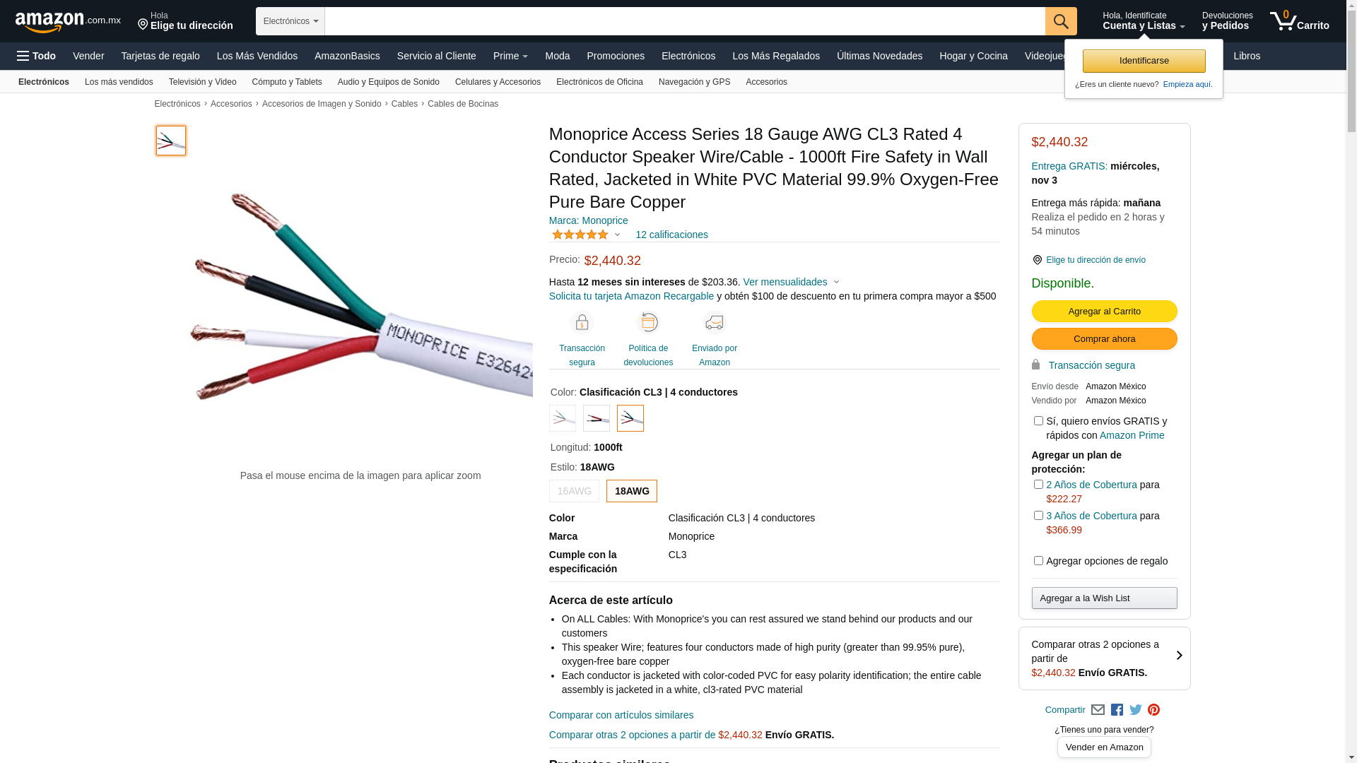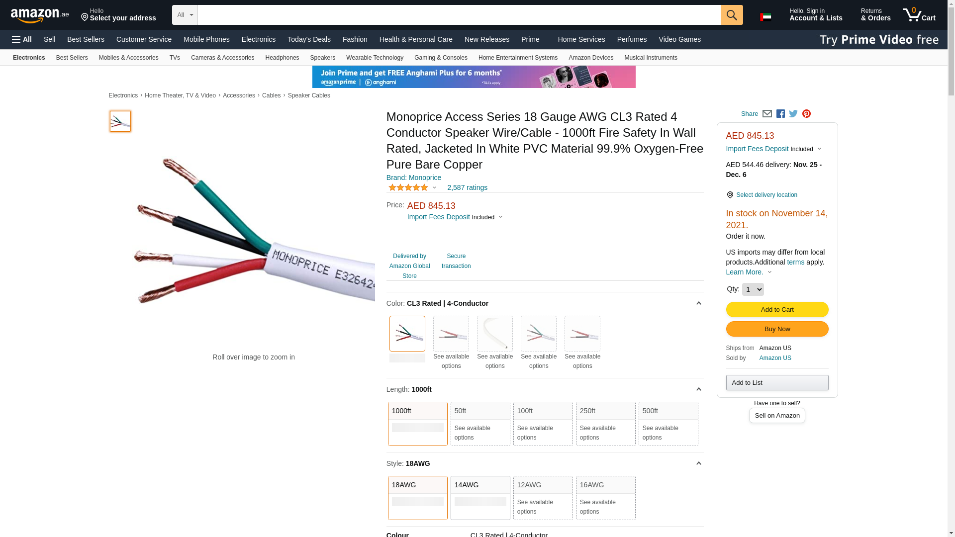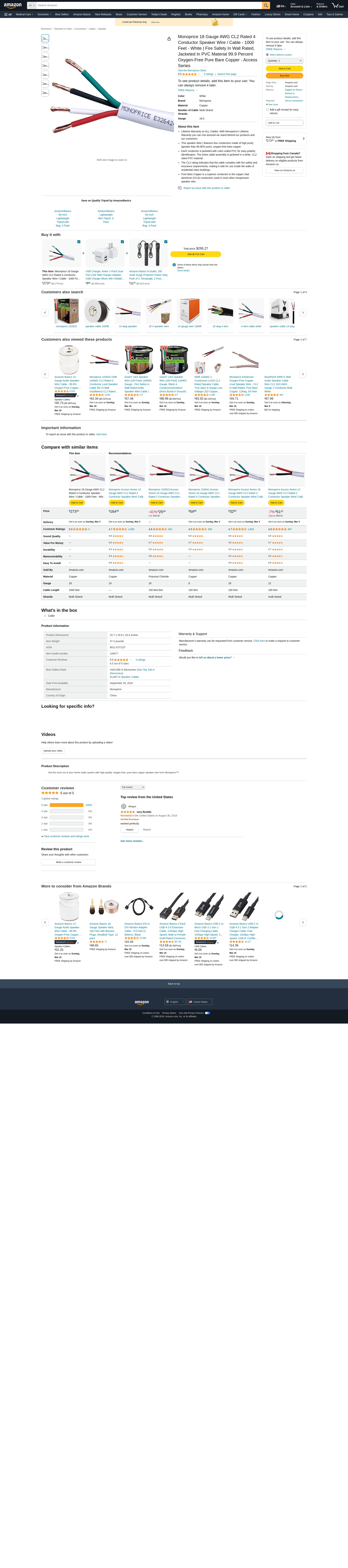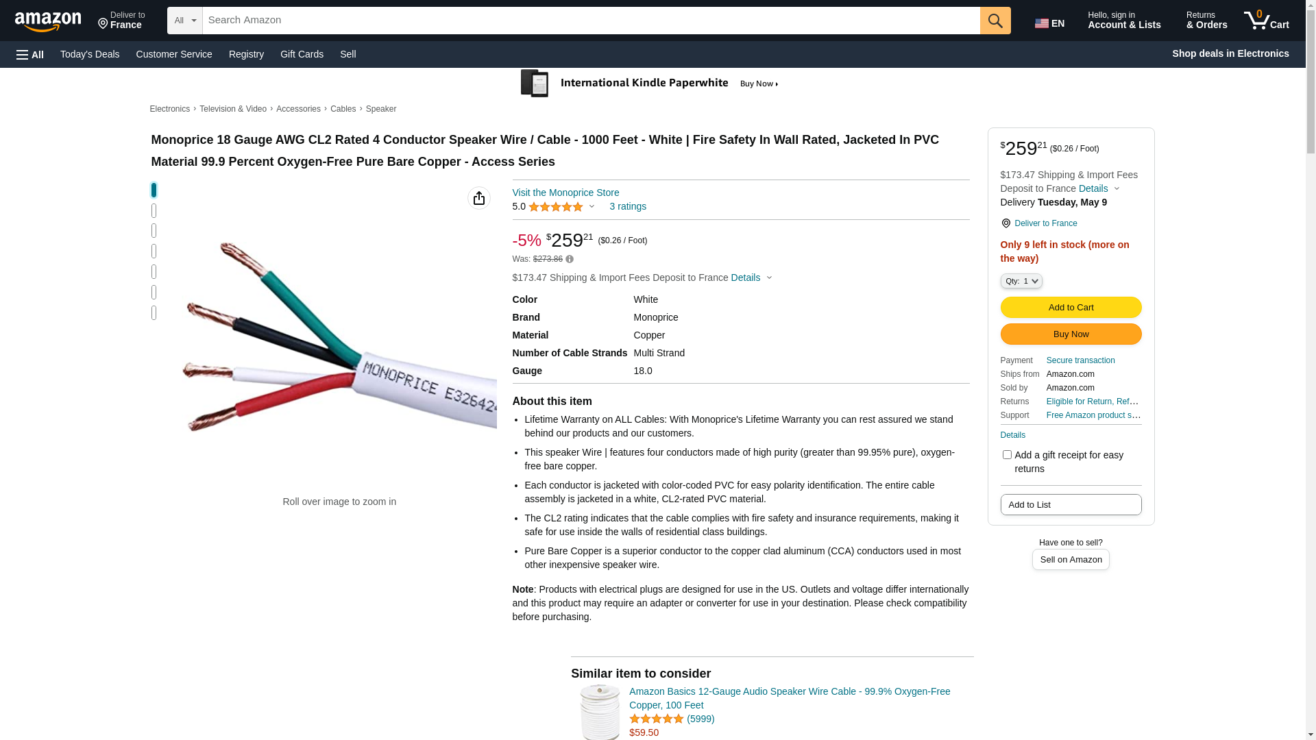 MONOPRICE, INC. 16077 CL3 RATED 4-CONDUCT SPEAKER WIRE_ 1000FT