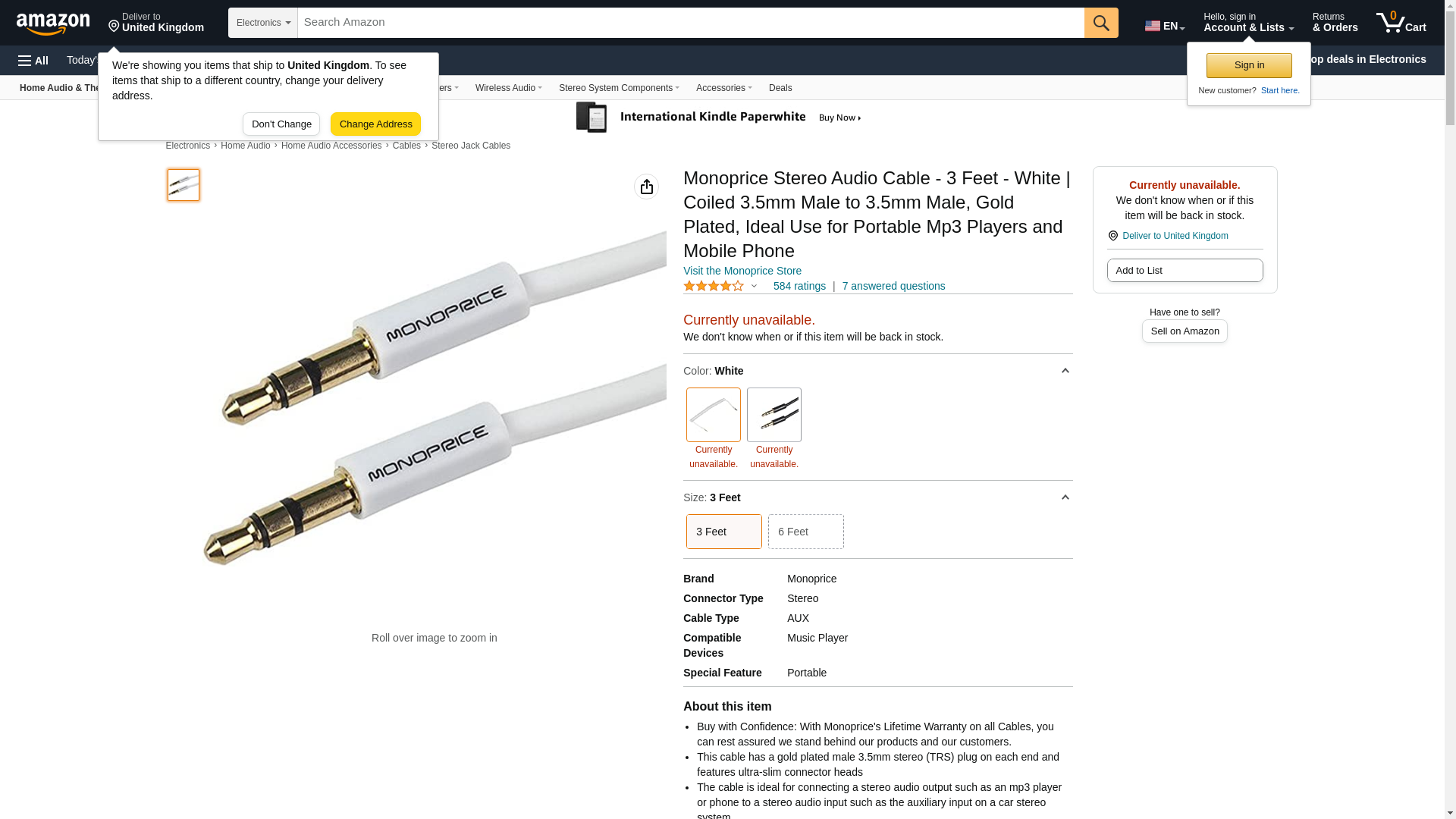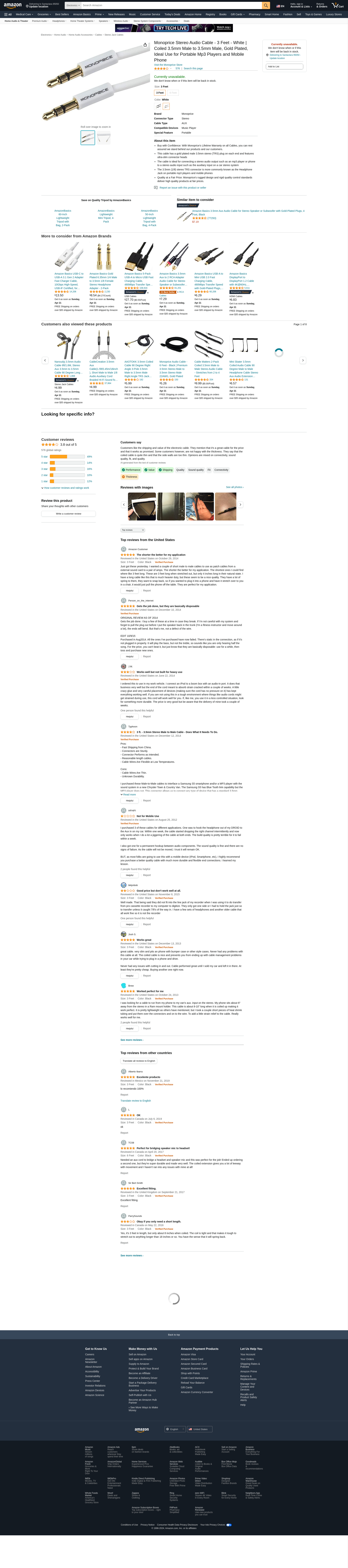 Monoprice 109566 Coiled 3-Feet 3.5mm Male to 3.5mm Male Stereo Audio Cable, White. The 3.5mm (1/8") stereo TRS connec...