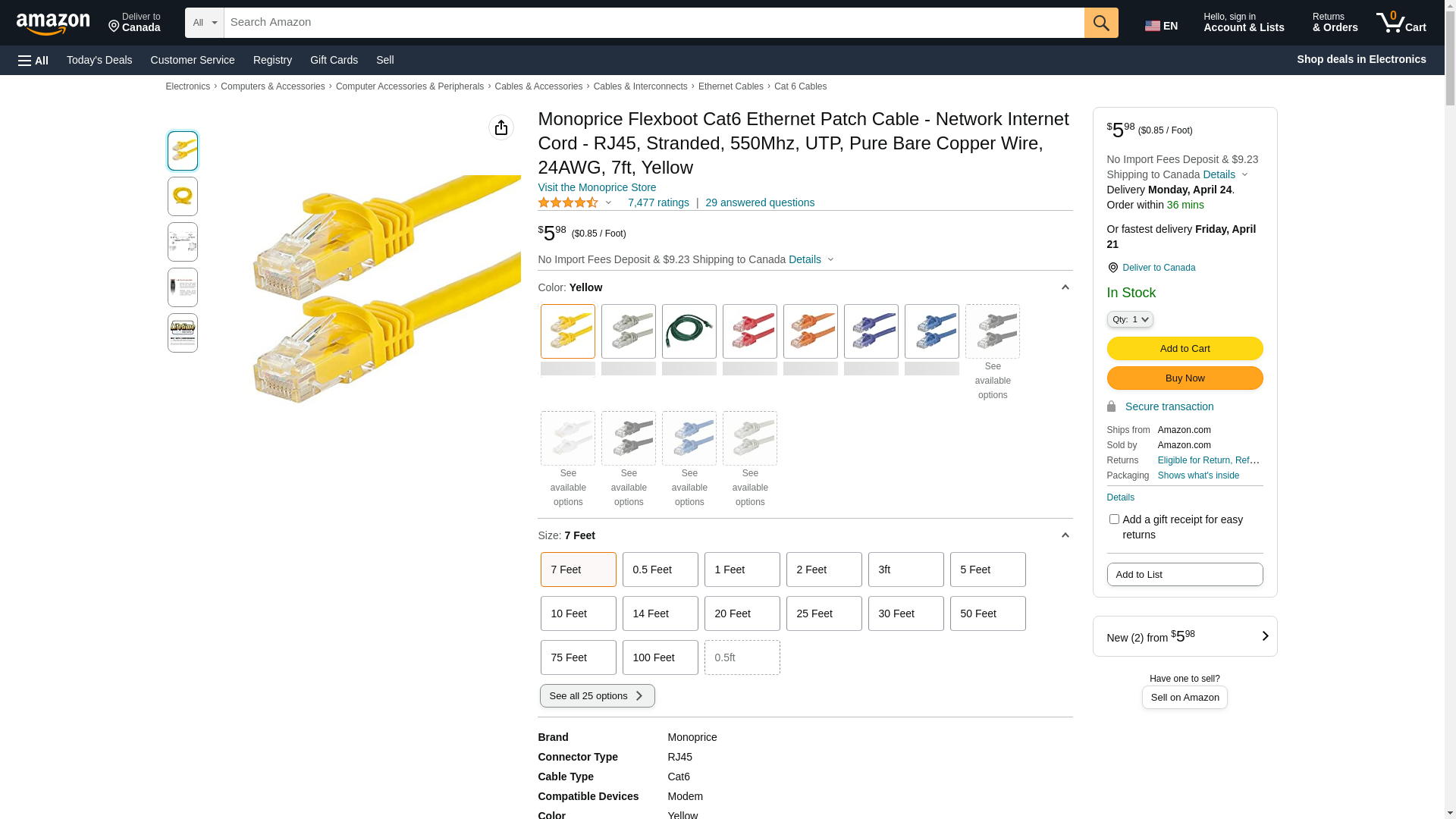 Monoprice Flexboot Cat6 Ethernet Patch Cable - Network Internet Cord - RJ45, Stranded, 550Mhz, UTP, Pure Bare Copper Wire, 24AWG, 7ft, Yellow