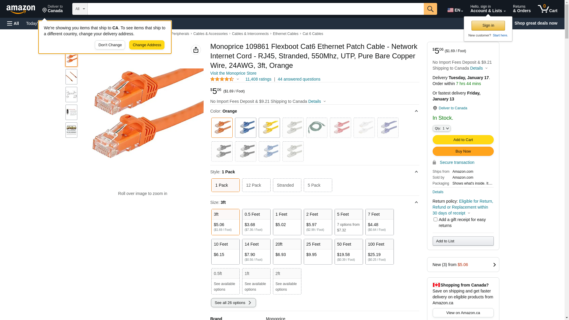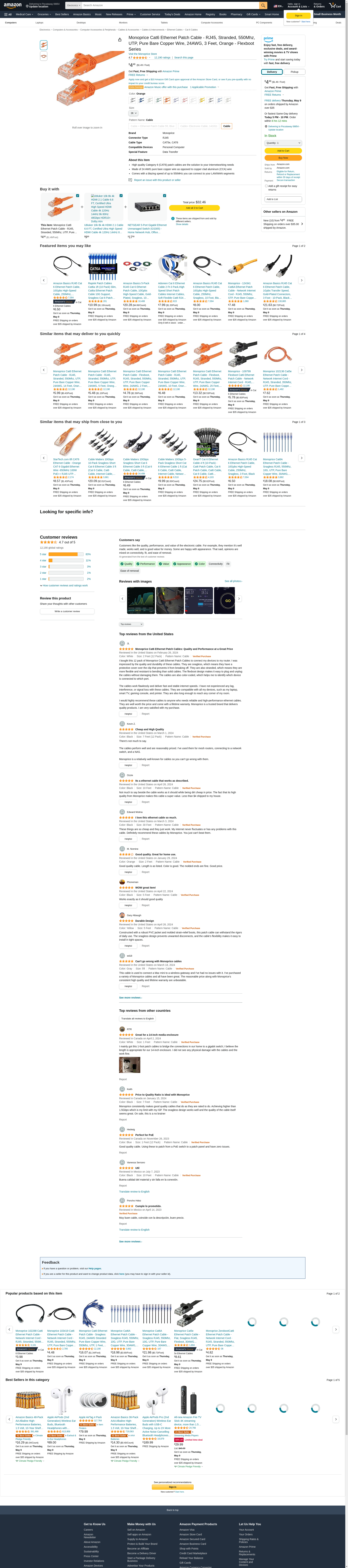 Monoprice Cat6 Ethernet Patch Cable - RJ45, Stranded, 550Mhz, UTP, Pure Bare Copper Wire, 24AWG, 3 Feet, Orange - Flexboot Series