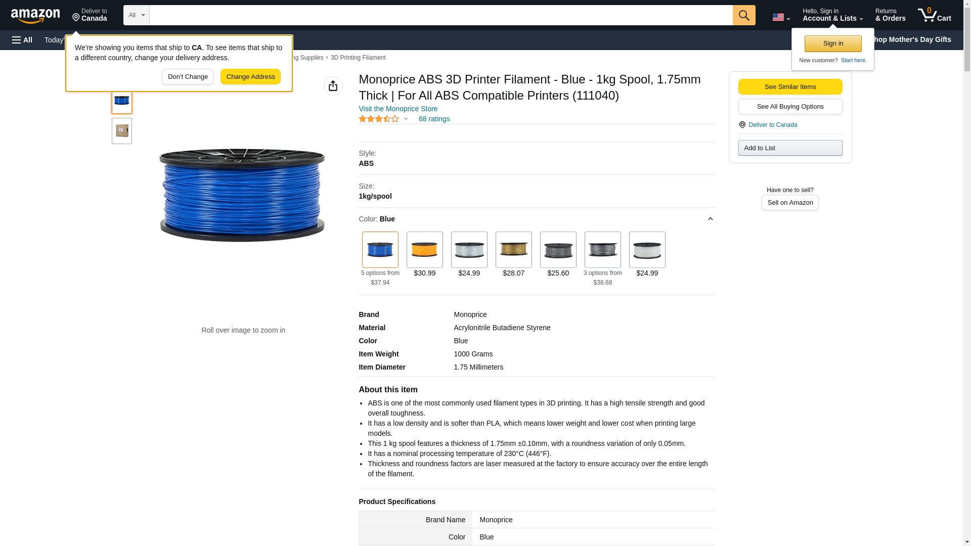 Monoprice 111040 Premium 3D Printer Filament ABS 1.75MM 1kg/Spool, Blue. 75mm ABS 3D Printer Filament from Monoprice!...