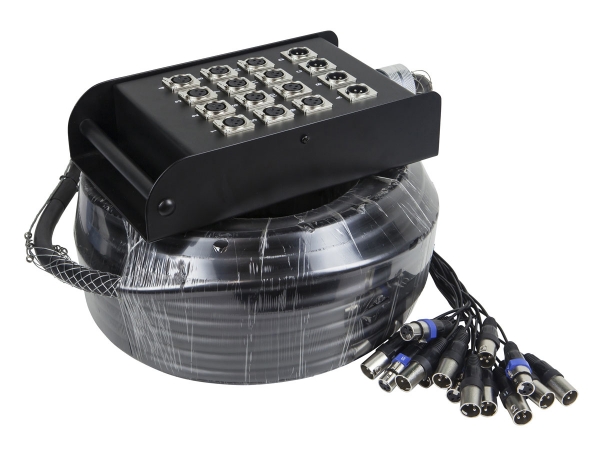 Monoprice 16-Channel XLR Snake & 12x4 Stage Box - 30 Meters (98 Feet) with 12 Downstream and 4 Upstream Connections black