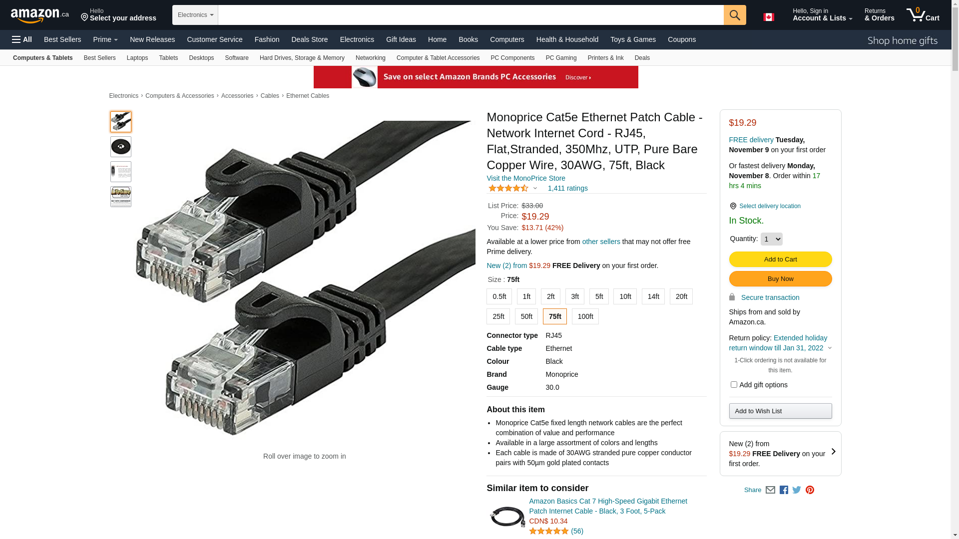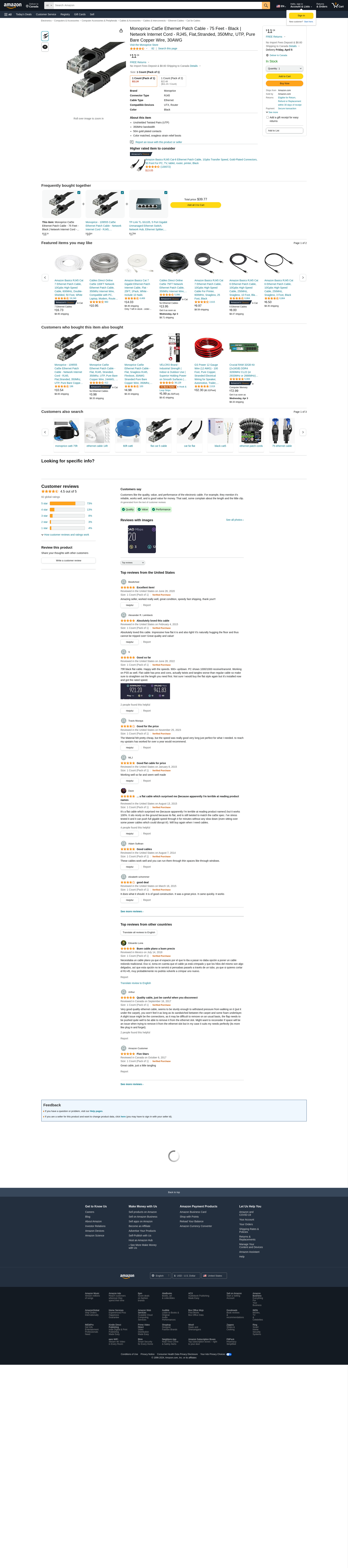 Monoprice 75-Feet 30AWG Cat5e 350MHz UTP Flat Ethernet Bare Copper Network Cable, Black (109556). Monoprice Cat5e fix...