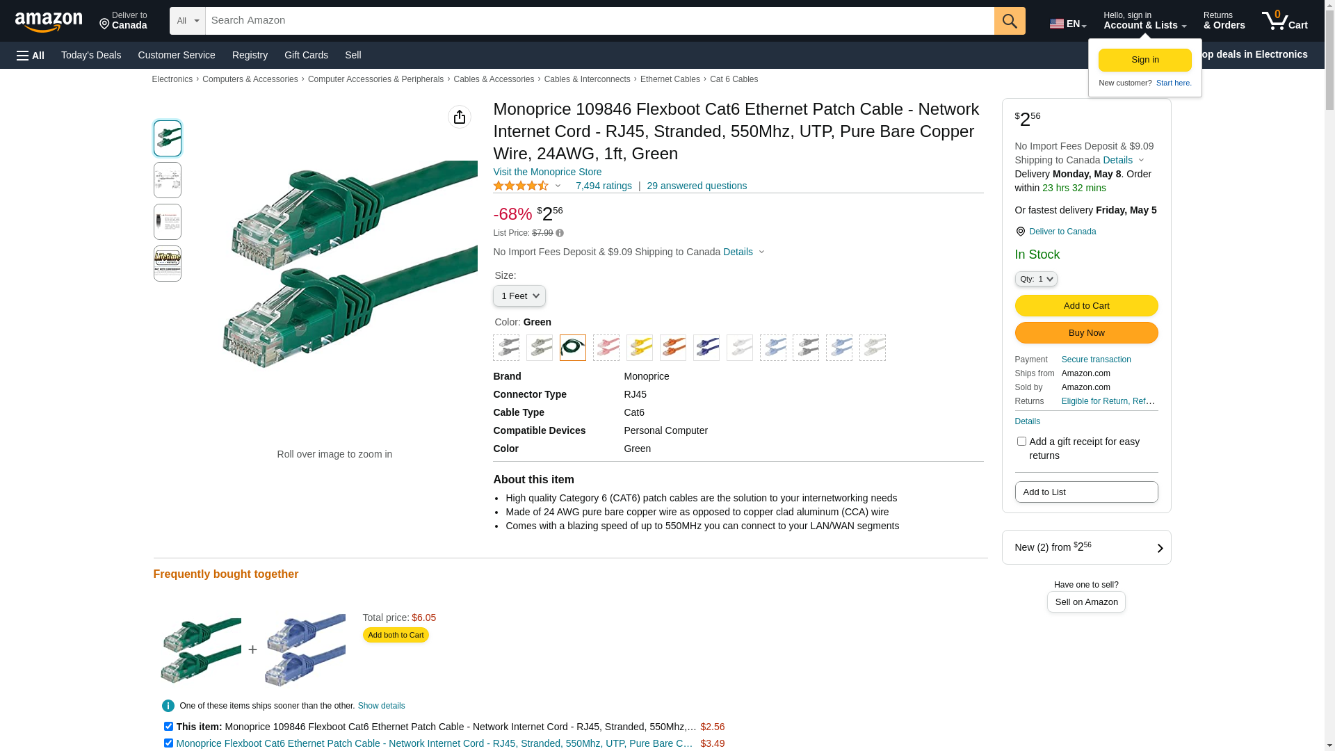 Monoprice 109846 Flexboot Cat6 Ethernet Patch Cable - Network Internet Cord - RJ45, Stranded, 550Mhz, UTP, Pure Bare Copper Wire, 24AWG, 1ft, Green