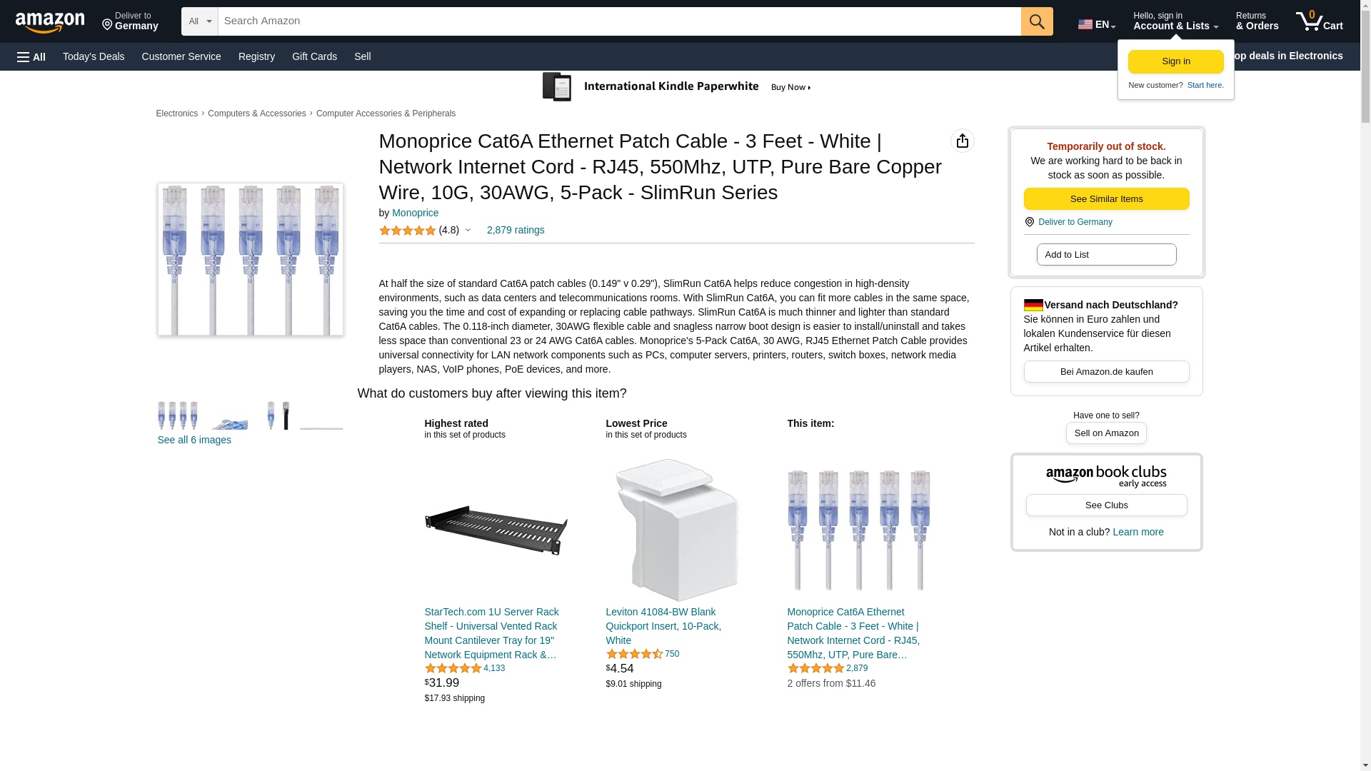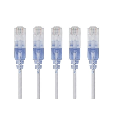 Monoprice Cat6A Ethernet Patch Cable - 3 Feet - White | Network Internet Cord - RJ45, 550Mhz, UTP, Pure Bare Copper Wire, 10G, 30AWG, 5-Pack - SlimRun Series