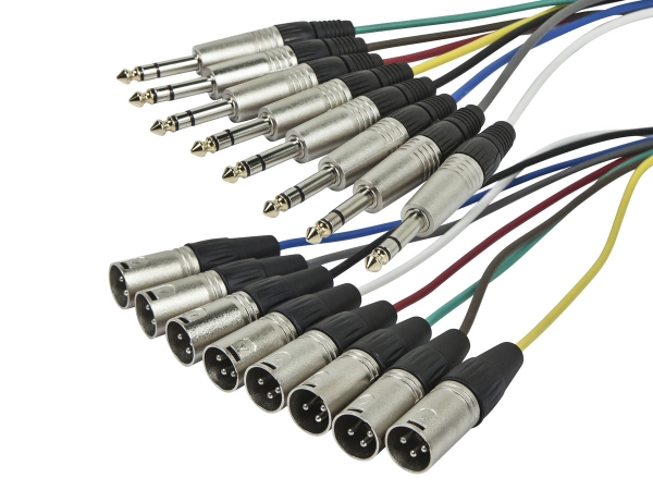 - 1/4" TRS plugs on one and end XLR male plugs on the other end