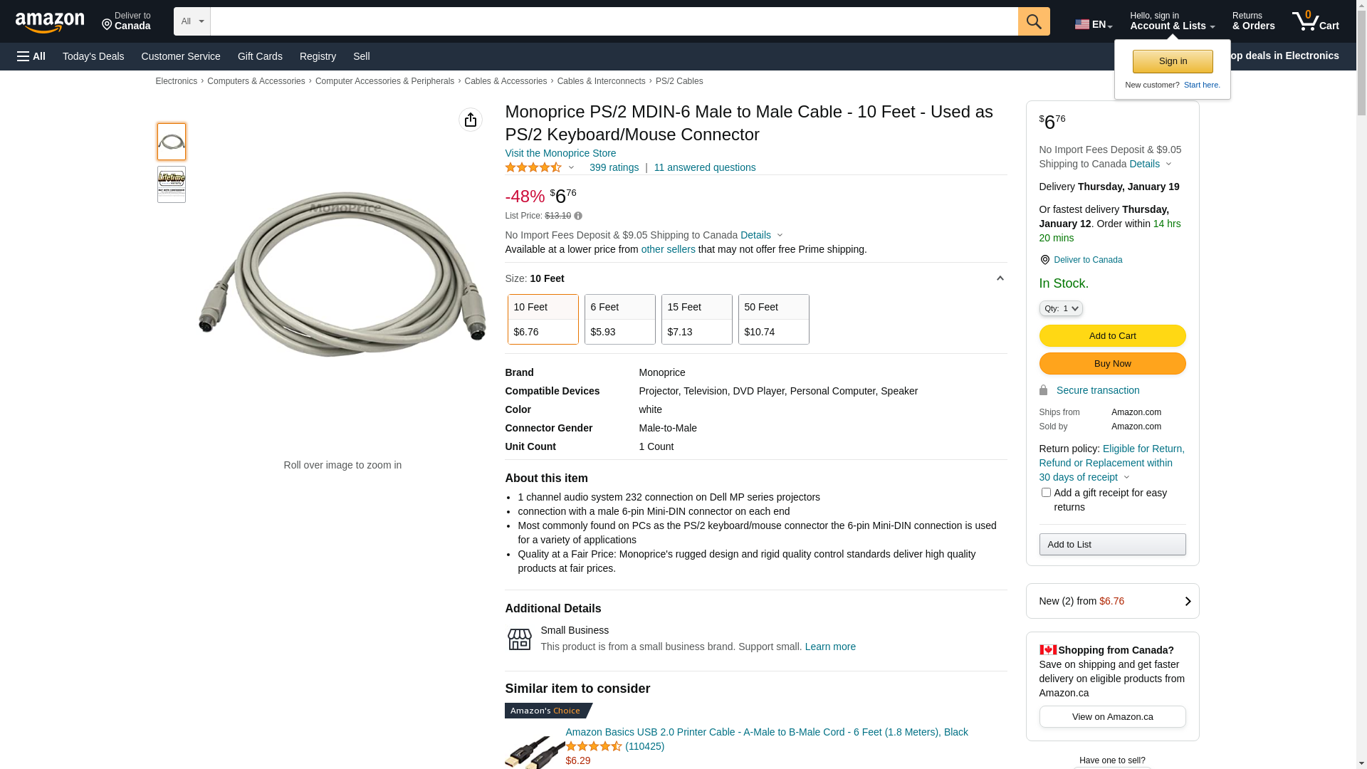 Monoprice 100094 10-Feet PS/2 MDIN-6 Male to Male Cable (100094). Most commonly found on PCs as the PS/2 keyboard/mou...
