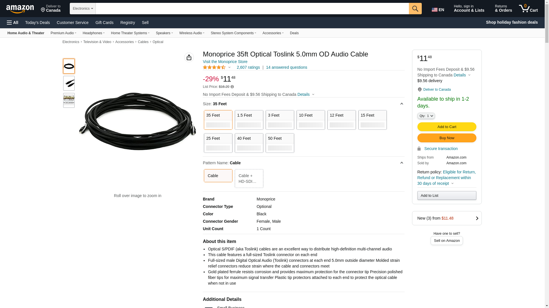 | Feature | Experience superb sonic clarity and accurate musical reproduction with this Optical Toslink cable from Monoprice |