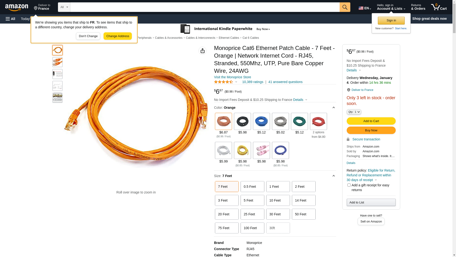 Monoprice Cat6 Ethernet Patch Cable - Snagless RJ45, Pure Bare Copper, 550MHz, UTP, 24AWG, 7 Feet, Orange - Fullboot Series