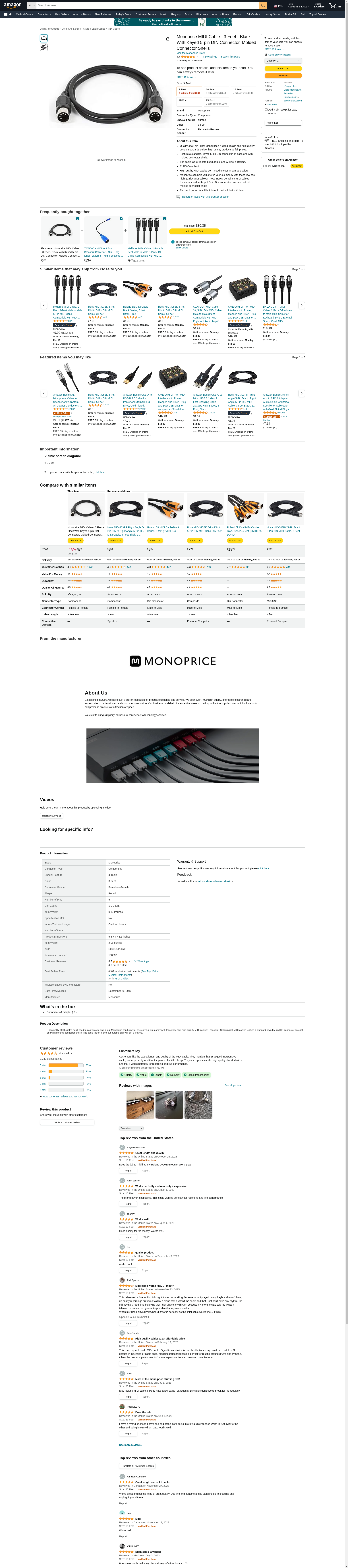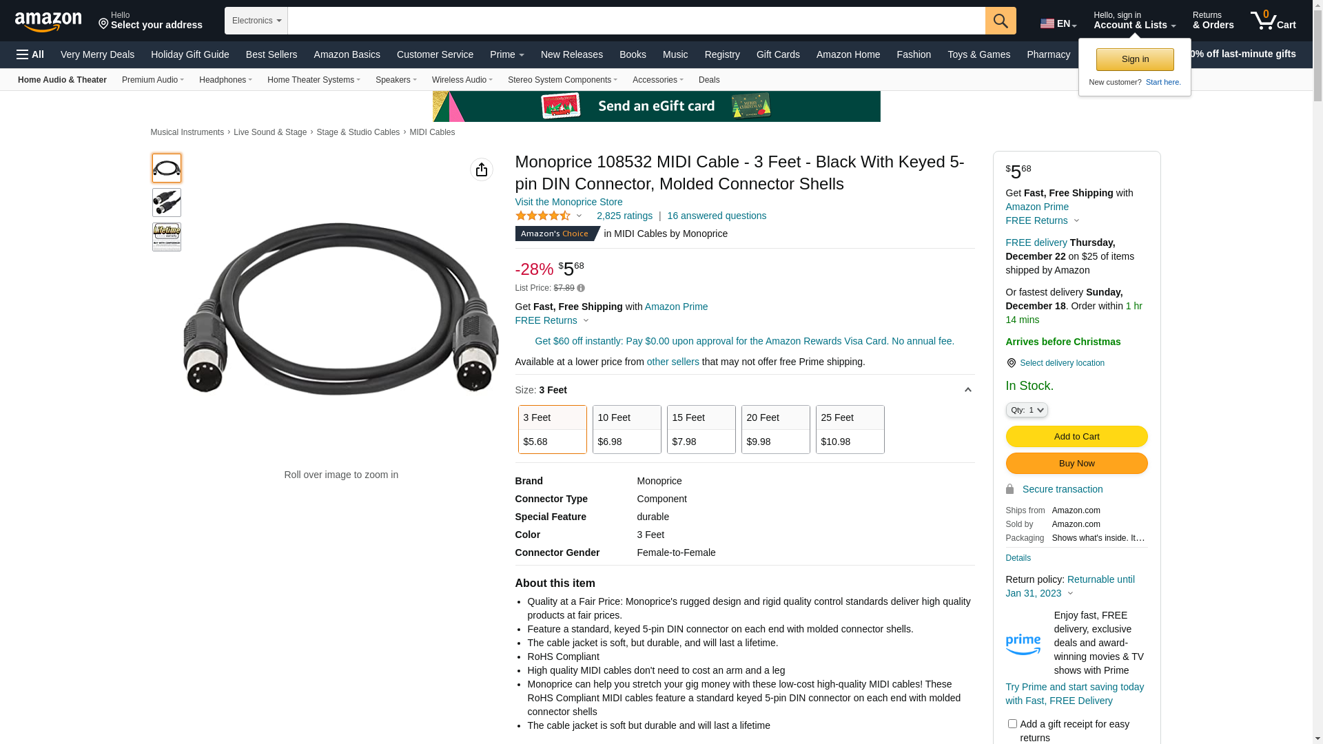 - Monoprice can help you stretch your gig money with these low-cost high-quality MIDI cables! These RoHS Compliant MIDI cables feature a standard keyed 5-pin DIN connector on each end with molded connector shells