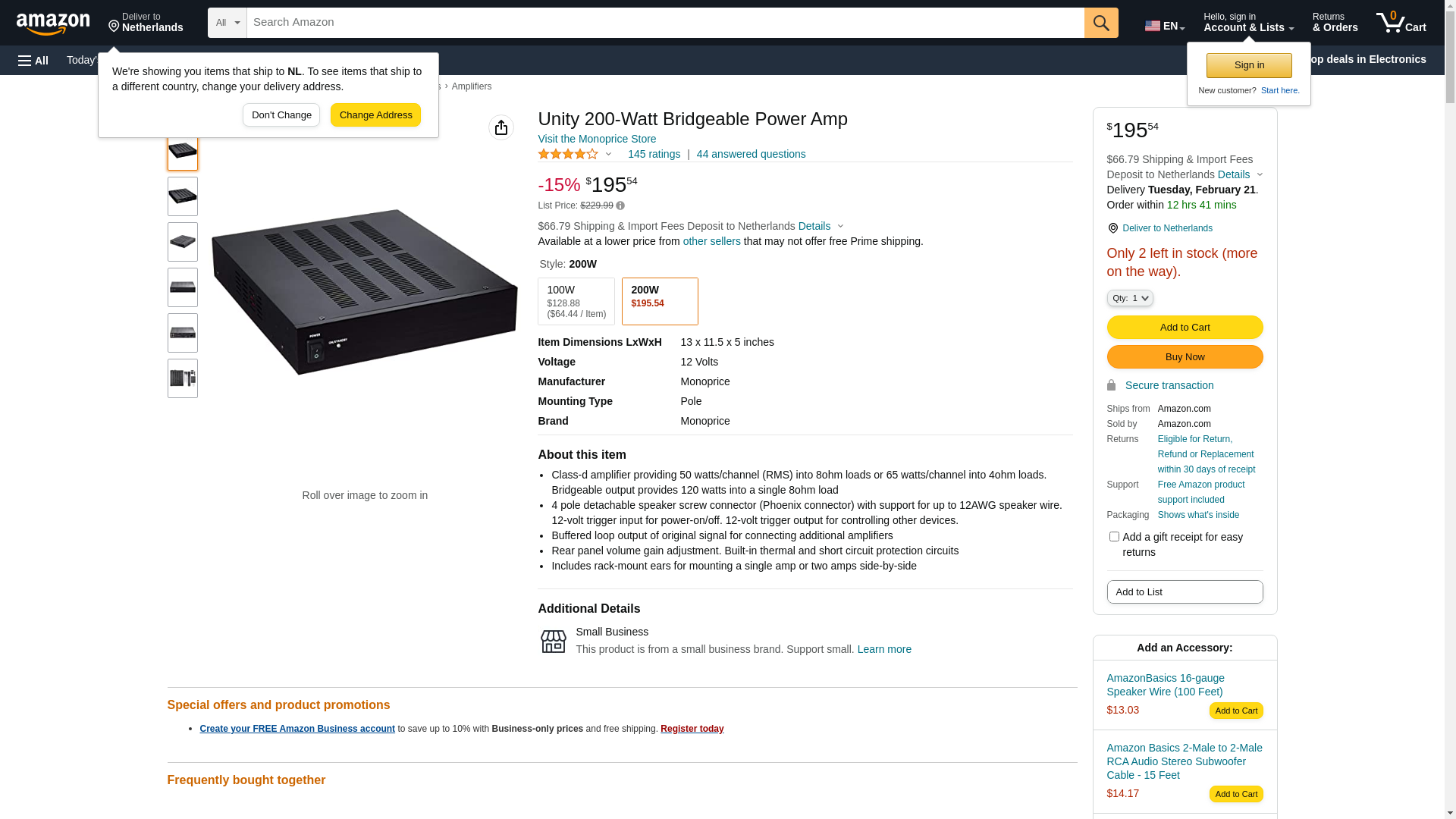 MONOPRICE, INC. 18514 MONOPRICE UNITY 200-WATT BRIDGEABLE POWER AMP