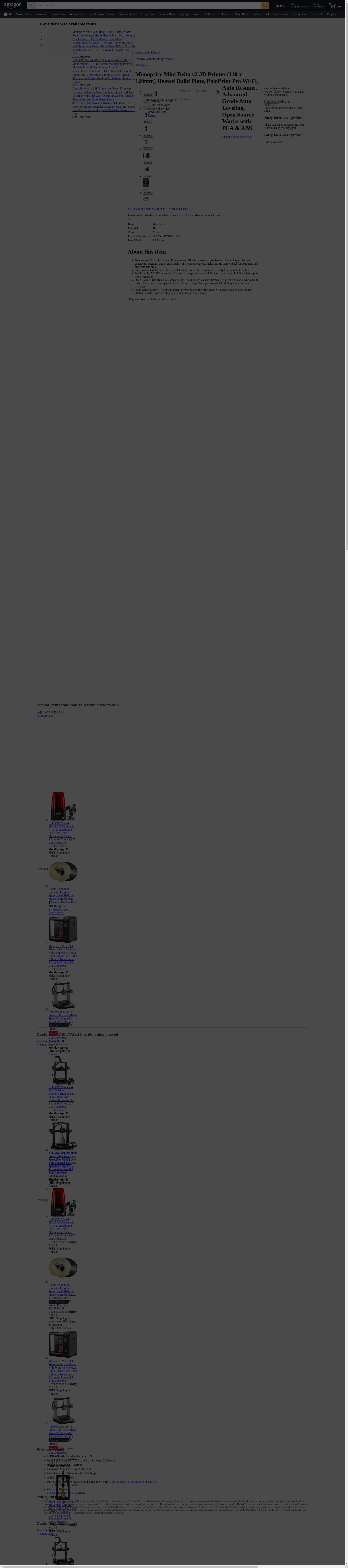 Monoprice Mini Delta v2 3D Printer (110 x 120mm) Heated Build Plate, PoloPrint Pro Wi-Fi, Auto Resume, Advanced Gcode Auto Leveling, Open Source, Works with PLA & ABS
