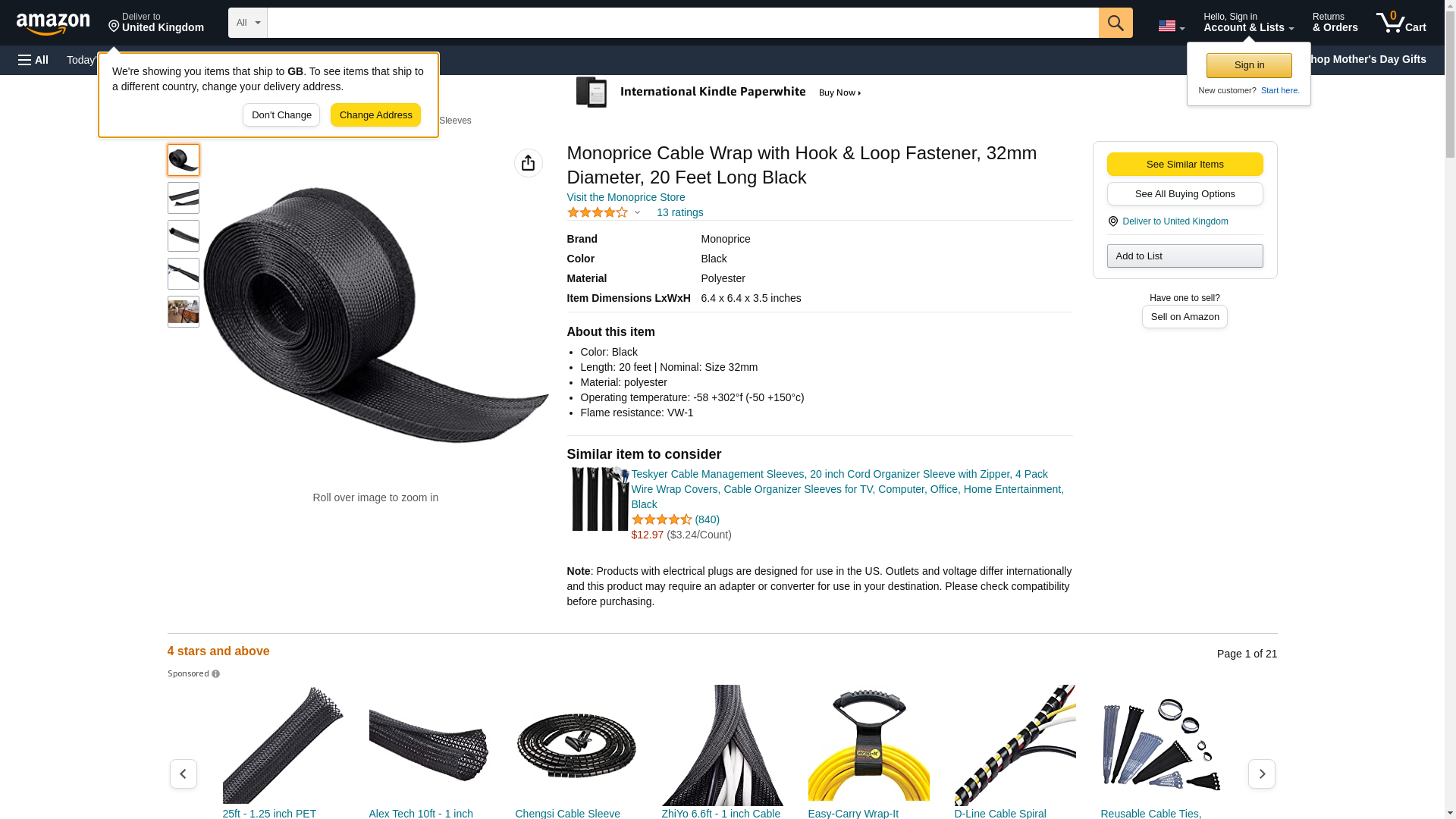MONOPRICE, INC. 21841 MONOPRICE CABLE WRAP WITH HOOK & LOOP FASTENER_ 32MM DIAMETER_ 20 FEET LONG