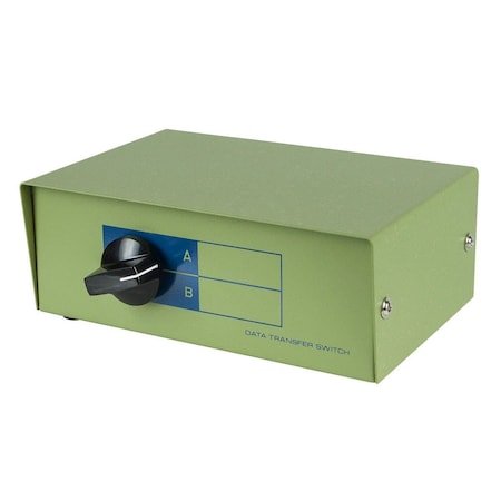 Manual, 2 way, DB9 (serial), bidirectional switch box. Switch between up to 2 devices. Rugged Steel Construction. DB9 (Serial) female ports. Simple installation and use. Bidirectional. Rotary Dial. Beige Color.