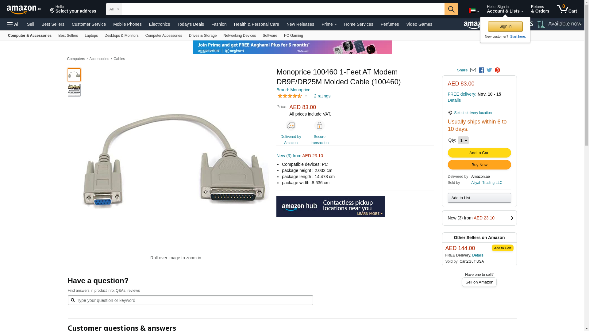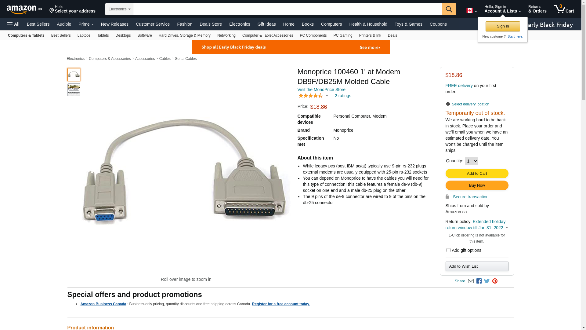Monoprice 1ft AT Modem DB9F/DB25M Molded Cable. While legacy PCs (post IBM PC/AT) typically use 9-pin RS-232 plugs ex...