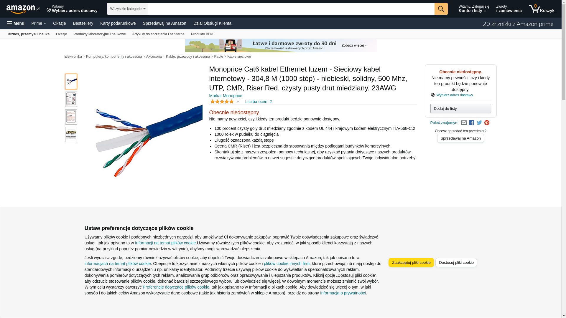 Monoprice Cat6 Ethernet Bulk Cable - Network Internet Cord - Solid, 500Mhz, UTP, CMR, Riser Rated, Pure Bare Copper Wire, 23AWG, 1000ft, Blue - 108103