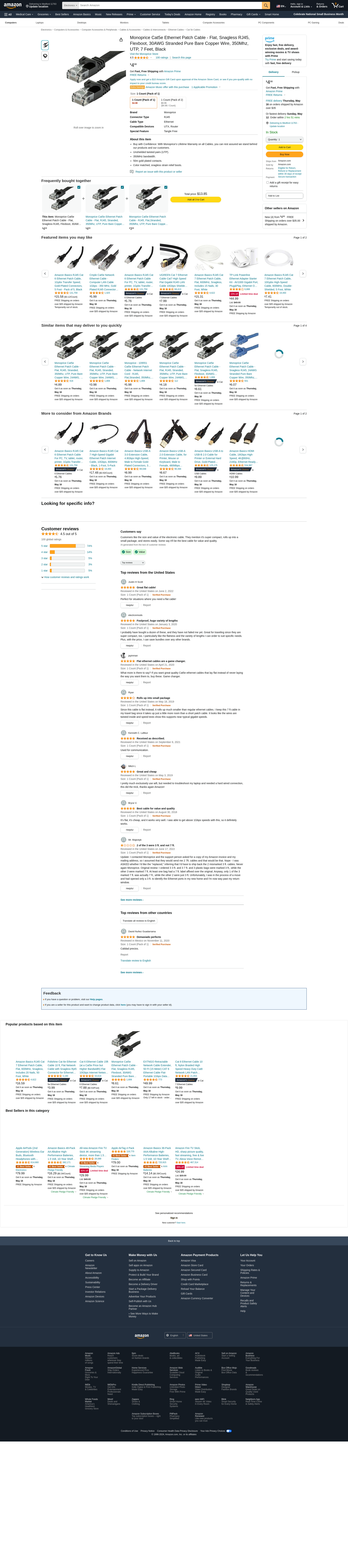 Monoprice Cat5e Ethernet Patch Cable - Flat, Snagless RJ45, Flexboot, 30AWG Stranded Pure Bare Copper Wire, 350Mhz, UTP, 7 Feet, Black