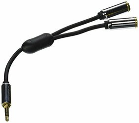 - His 6-inch long splitter cable features a female 3.5mm plug on one end and two male 3.5mm jacks on the other