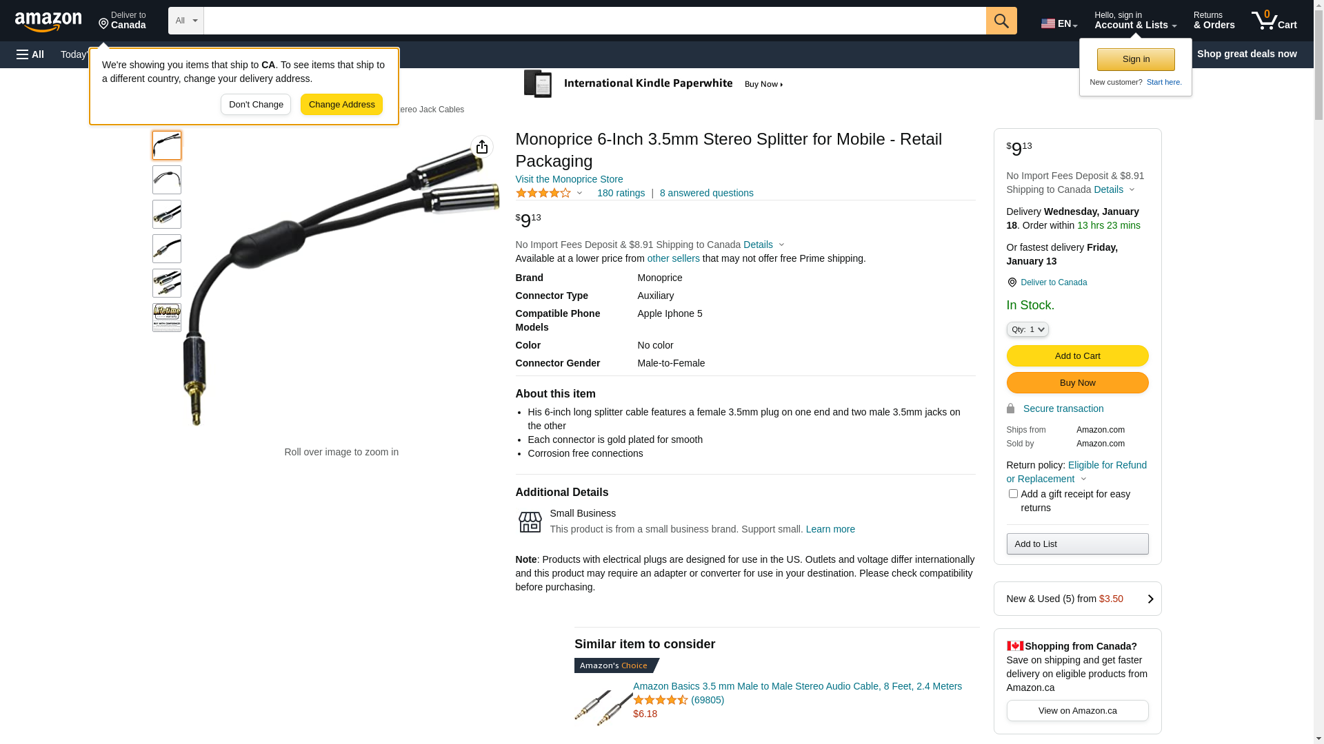 | Feature | Share the music on your portable music player with a friend using this Designed for Mobile 6-inch 3.5mm Stereo Splitter from Monoprice |