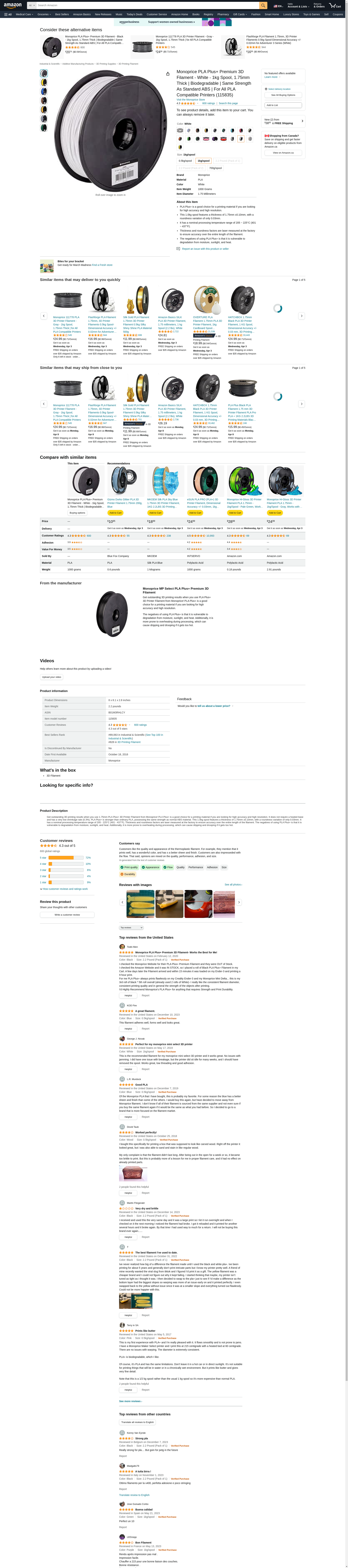 Monoprice PLA Plus+ Premium 3D Filament - White - 1kg Spool, 1.75mm Thick | Biodegradable | Same Strength As Standard ABS | For All PLA Compatible Printers (115835)