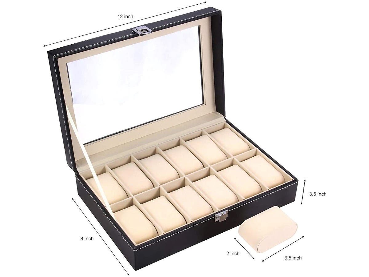 Monoprice 42288 Watch Box 12 Slots Watch Organizer Jewelry Display Case Storage with Glass Top Perfect Gift for Holiday