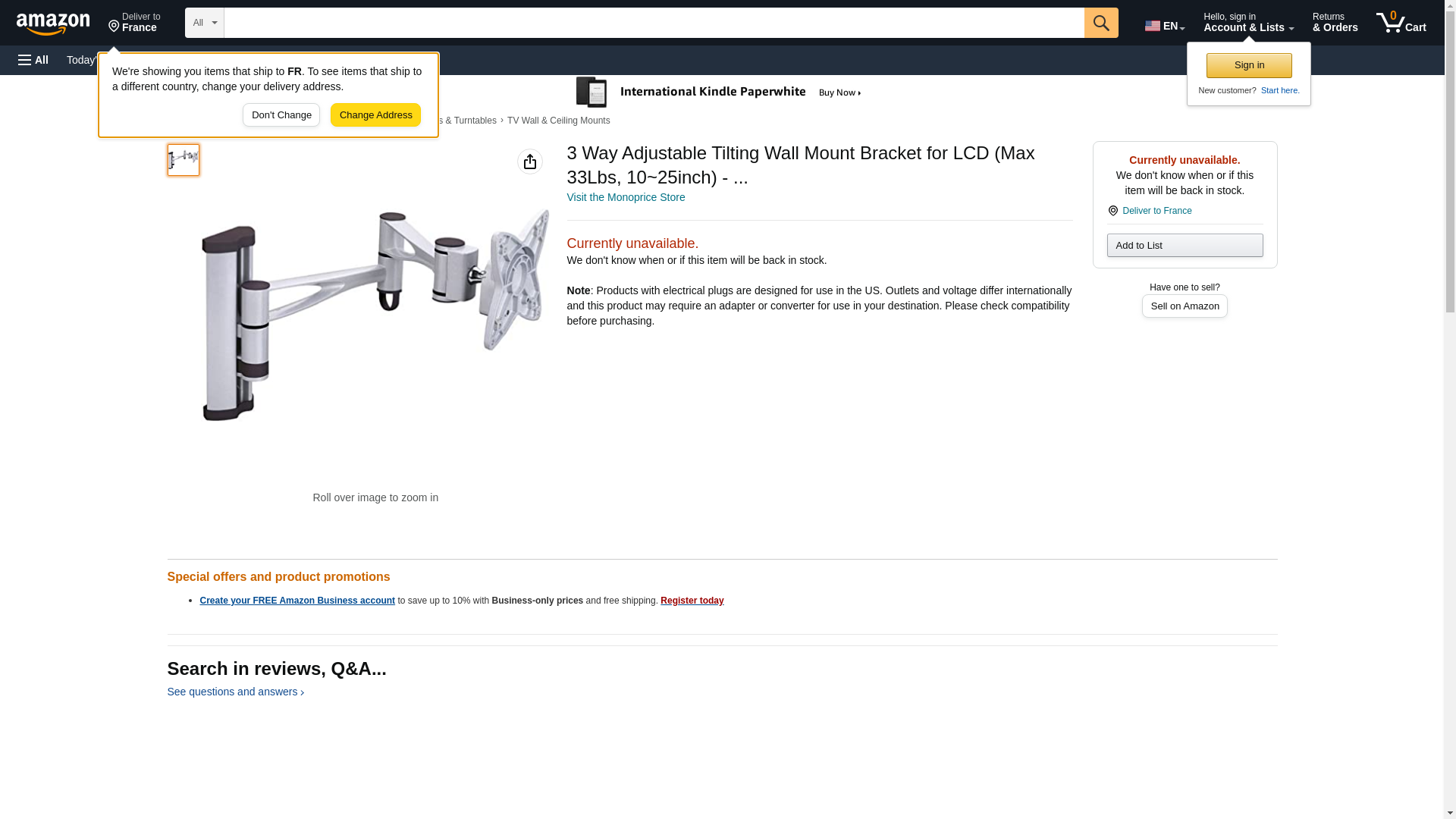 - 3 Way Adjustable Tilting Wall Mount Bracket for LCD (Max 33Lbs, 10~25inch) - ...