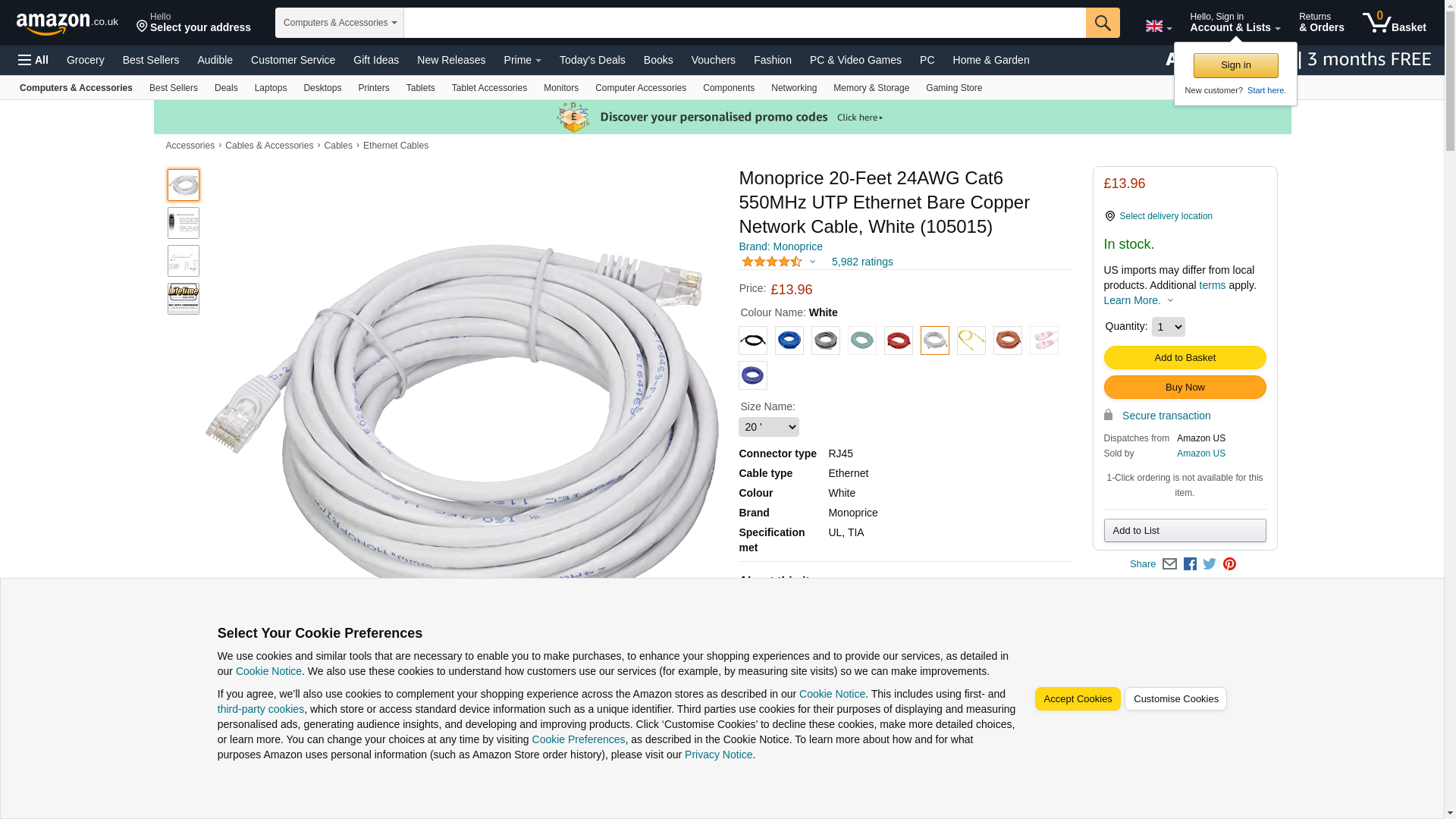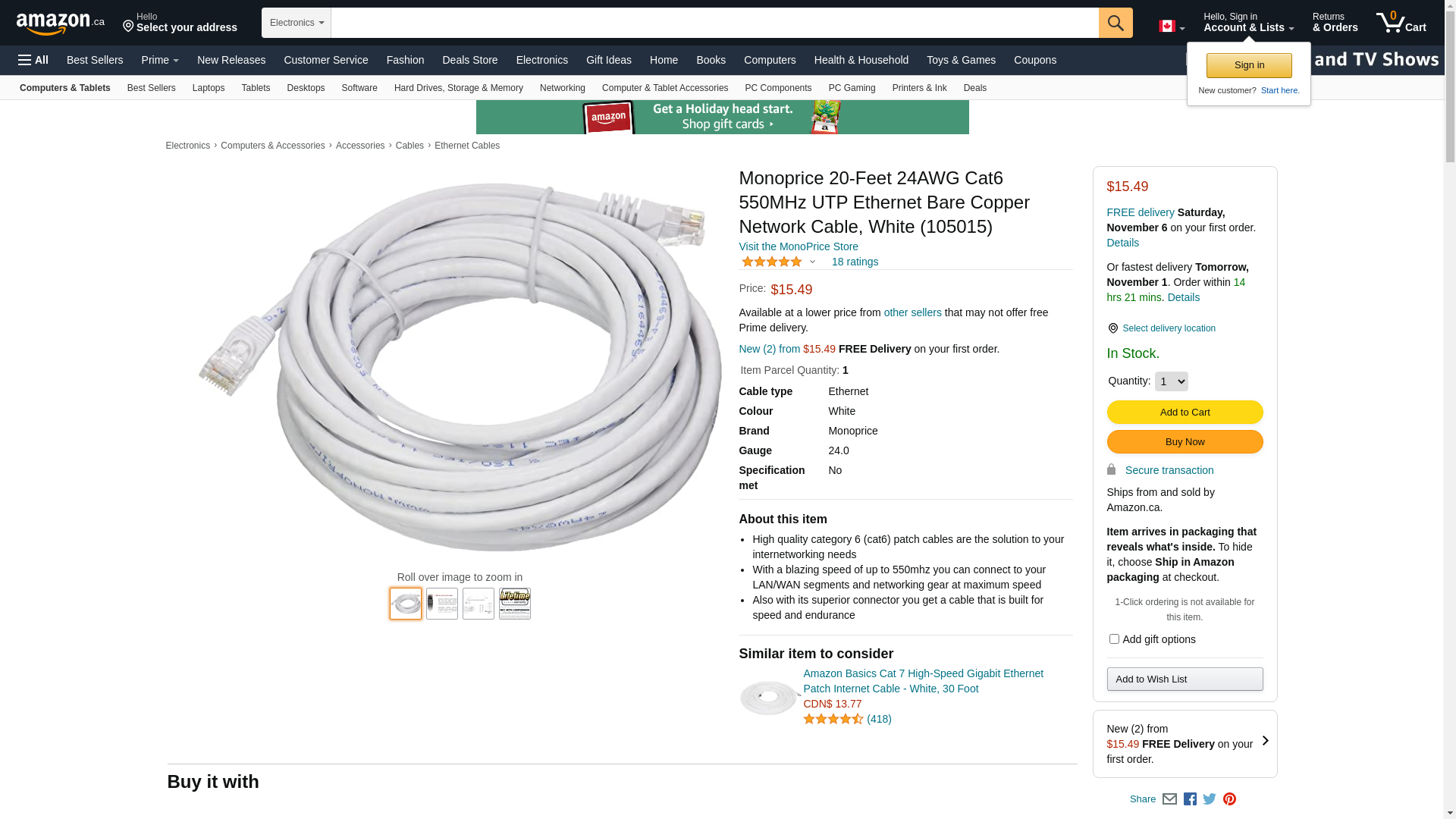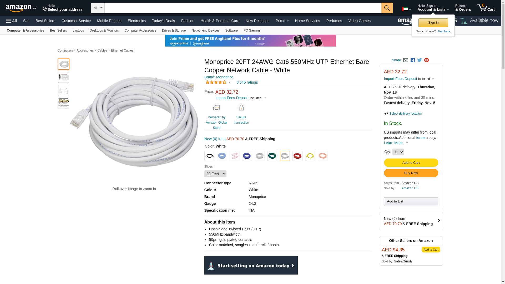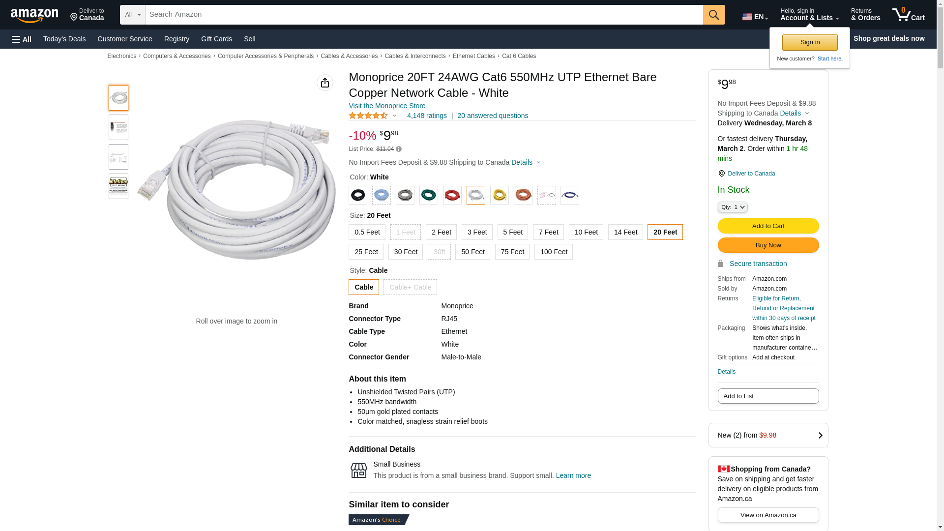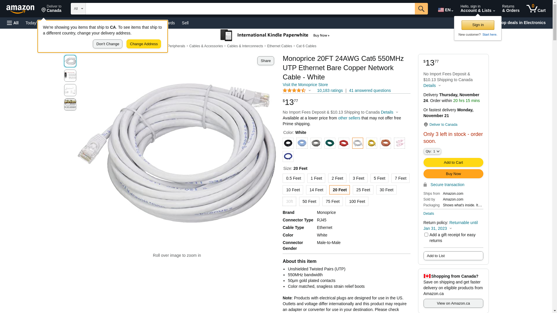 20FT Cat6 550MHz UTP Ethernet Network Cable - White [Electronics]