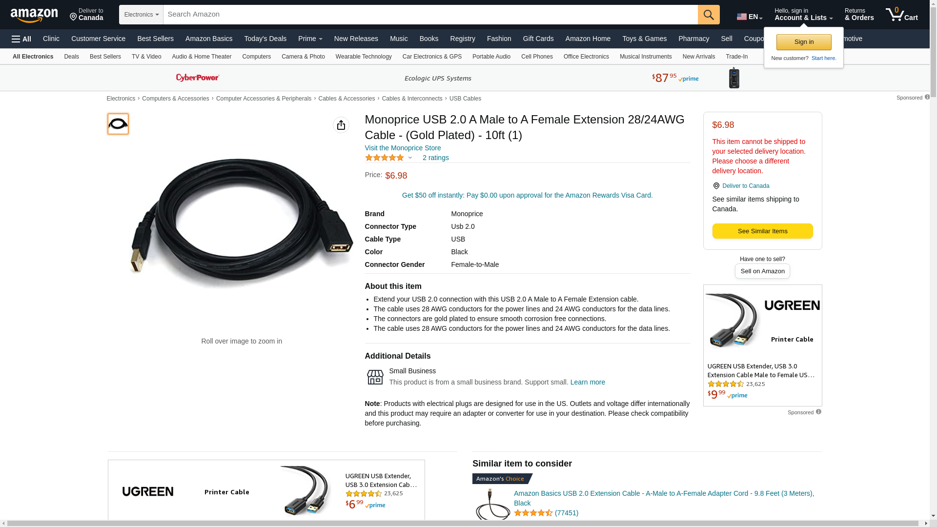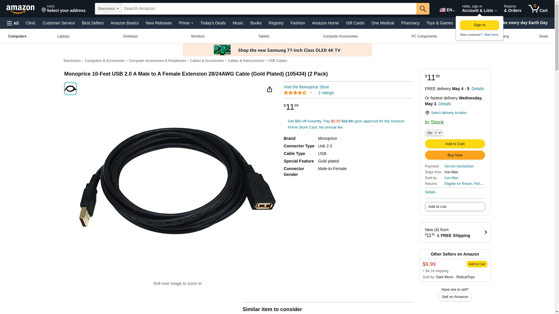 | Feature | 10-Feet USB 2.0 A Male to A Female Extension Cable (Gold Plated) (2 Pack) |