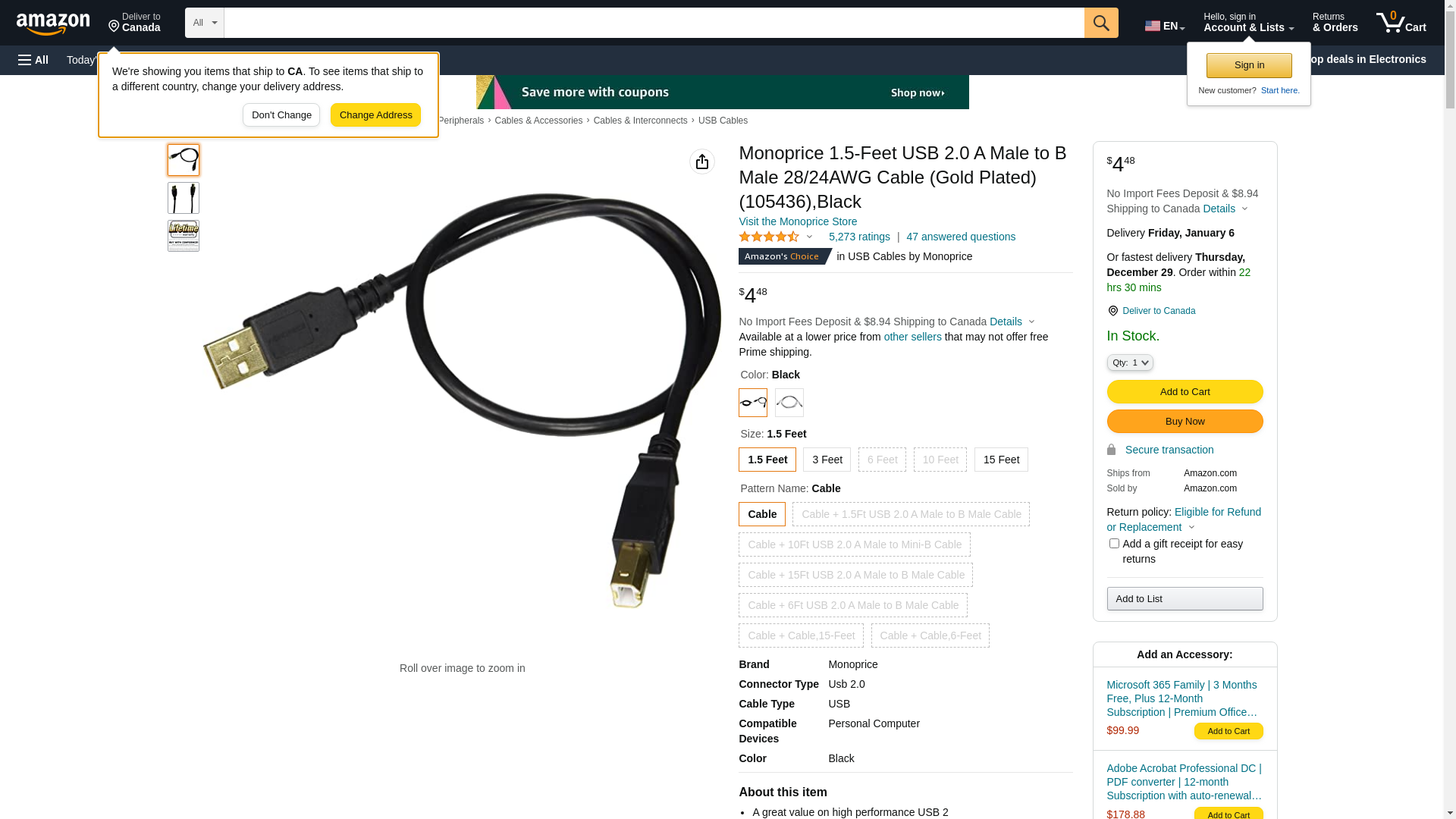 Monoprice 1.5-Feet USB 2.0 A Male to B Male 28/24AWG Cable (Gold Plated) (105436) (3)