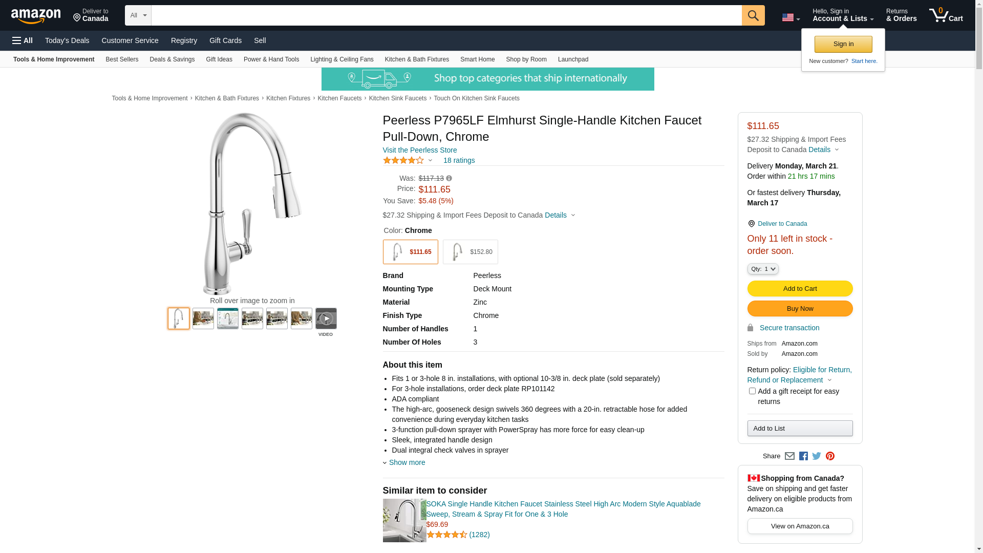 Peerless P7965LF Elmhurst Single-Handle Kitchen Faucet Pull-Down, Chrome