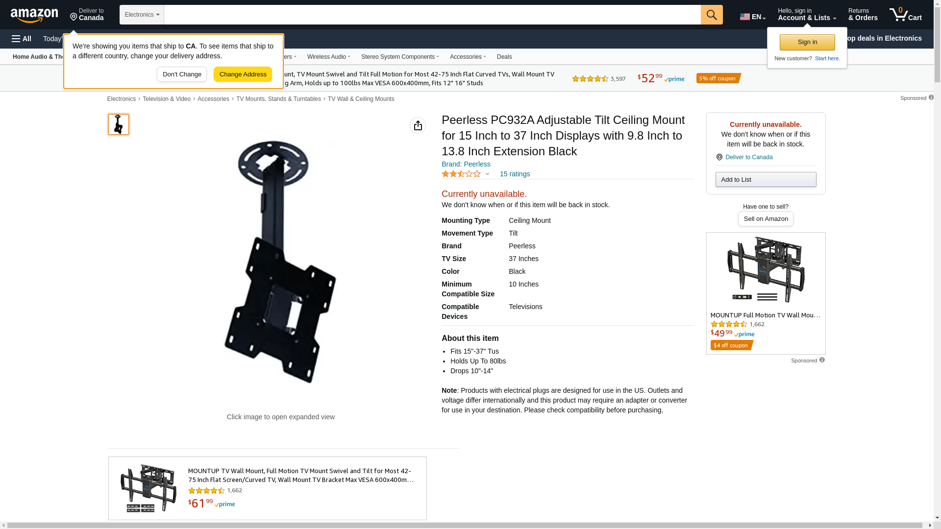 | Feature | mount peerless industries inc pc932a universal ceiling mount peerless ... |