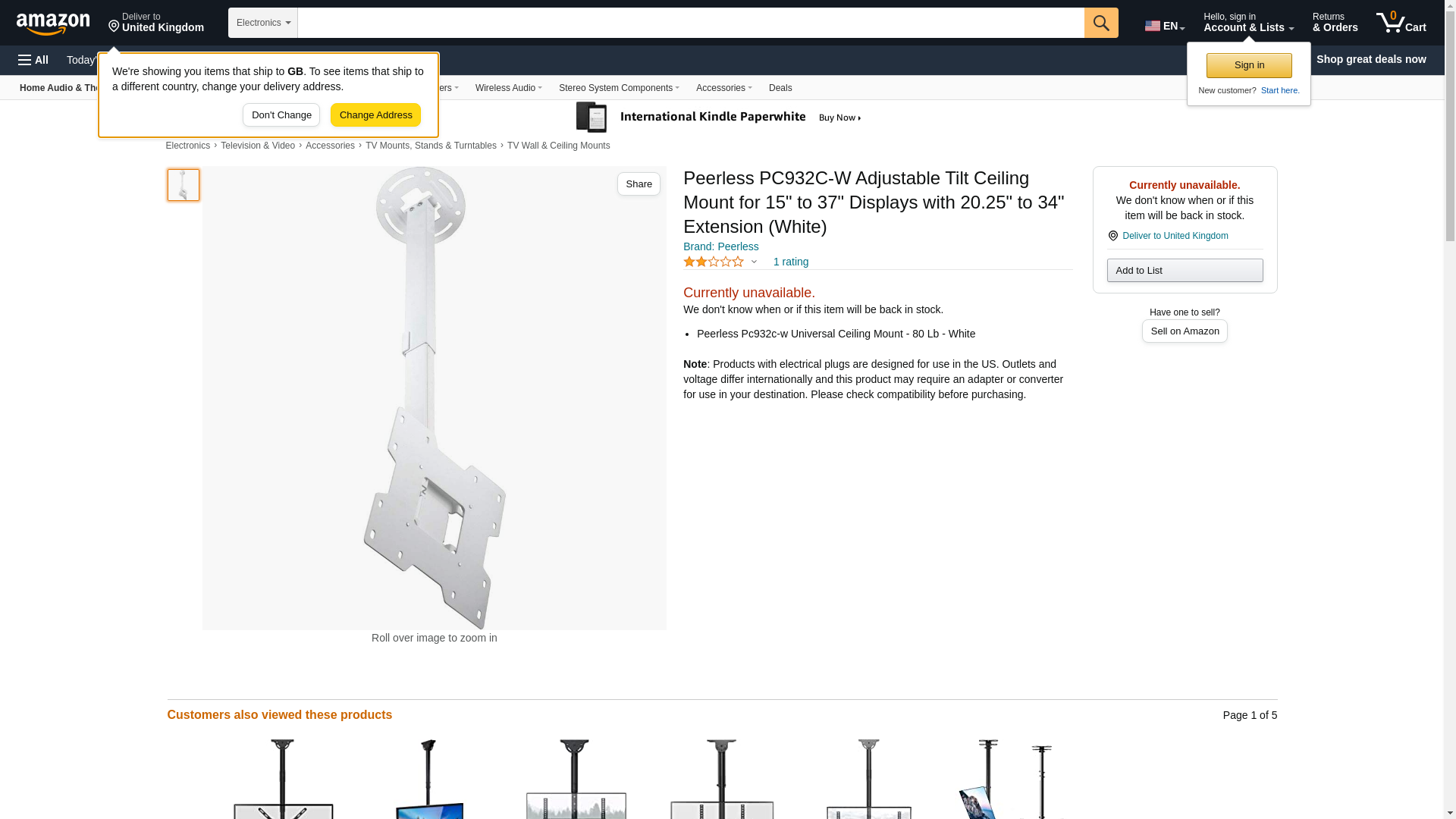 - Peerless Pc932c-w Universal Ceiling Mount - 80 Lb - White
