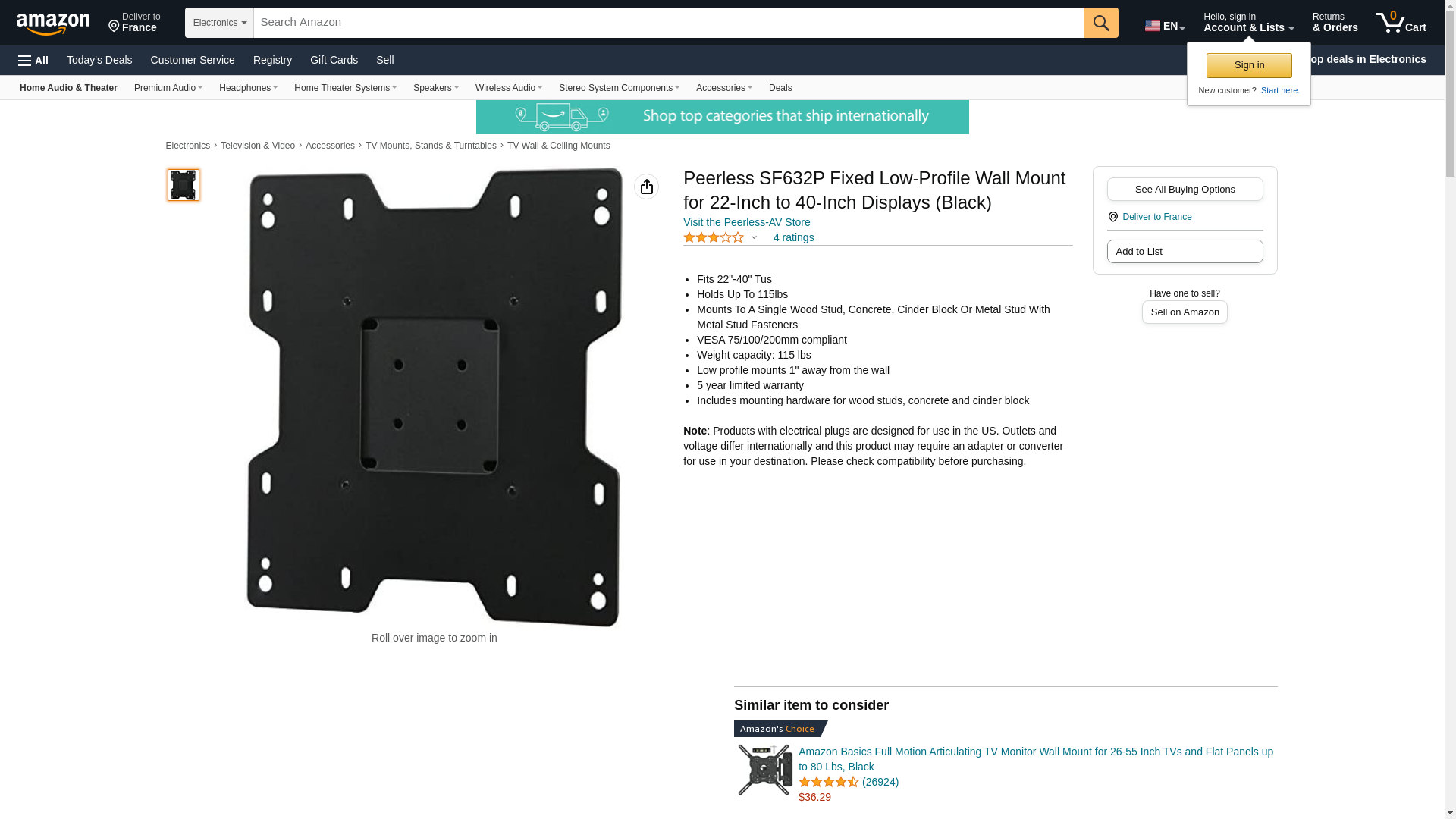 PEERLESS SMARTMOUNT SF632P UNIVERSAL 22"40" FLAT WALL MOUNT (BLACK)