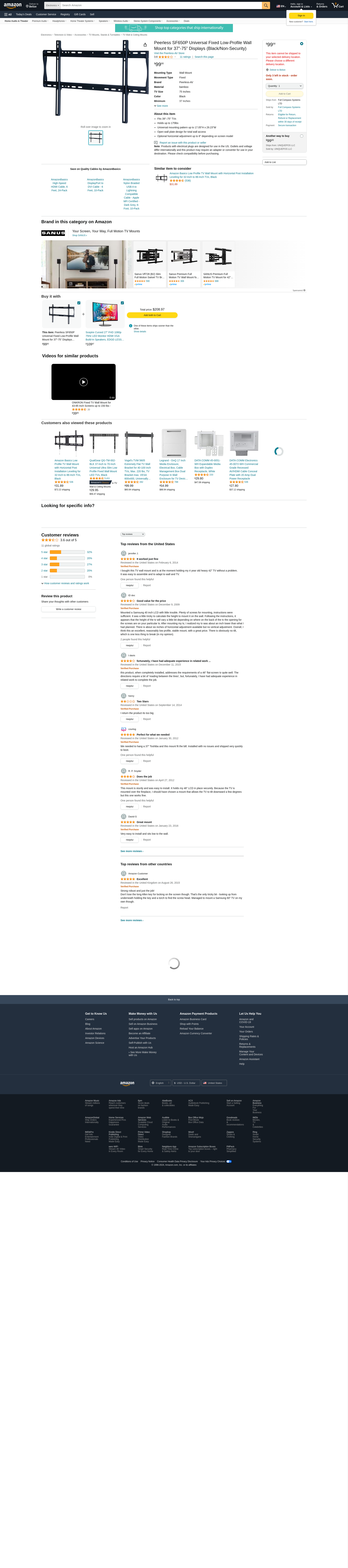 NEW PEERLESS SMARTMOUNT SF650P UNIVERSAL 32"–56" FLAT PANEL WALL MOUNT (BLACK) (HOME AUDIO)