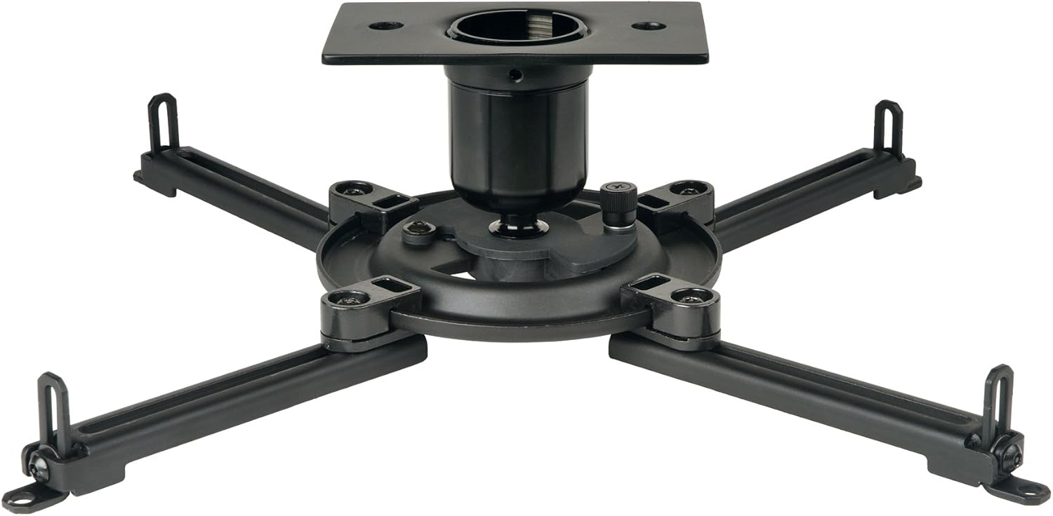 Description: ?<br/><br/>Adjusts To Fit Virtually Every Projector On The Market <Br> Unmatched Versatility <Br> Design Allows For Proper Projector Ventilation<Br> Theft-Resistant Armor Lock? Security At All Connection Points <Br> Mount Flush Or With 1.5 Npt Schedule <Br>40 Pipe Or Threaded Rod <Br> Quick Release Feature For Easy Maintenance <Br> Includes 4 Adjustable Legs To Align With The Projector's Mounting Holes & A Variety Of Mounting Screws For Compatibility With Most Projectors Threaded Inserts <Br> Holds Up To 50 Lbs <Br> Cable Management <Br> Ul Listed<Br> Black <br>
